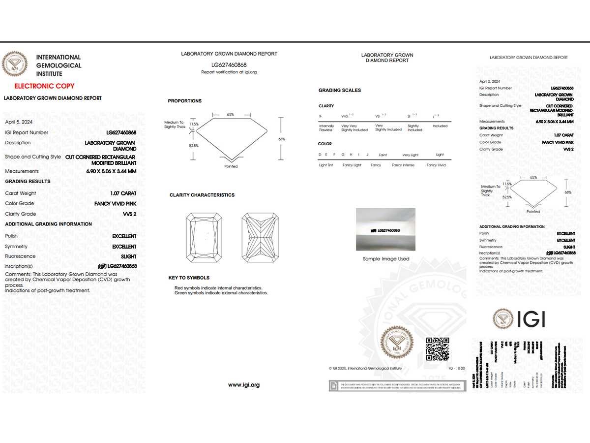 Radiant diamant 1.07ct – fancy vivid pink/vvs2 – igi