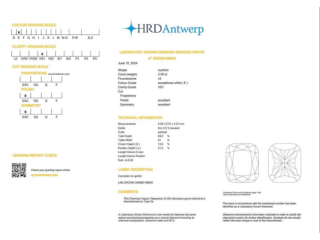 Cushion diamant 2.05ct - e/vs1 - hrd