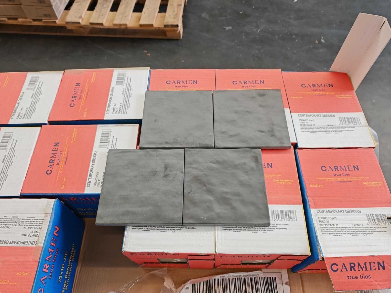 Merk: Carmen Kleur: Obsidian Afwerking: Mat Lengte: 15cm Breedte: 15cm Materiaal: Keramiek Dikte: 7.9mm Type: Wandtegel Model: Contemporary Gewicht: 900kg Aantal m² per verpakking: 0.495m² Aantal pakken: 90