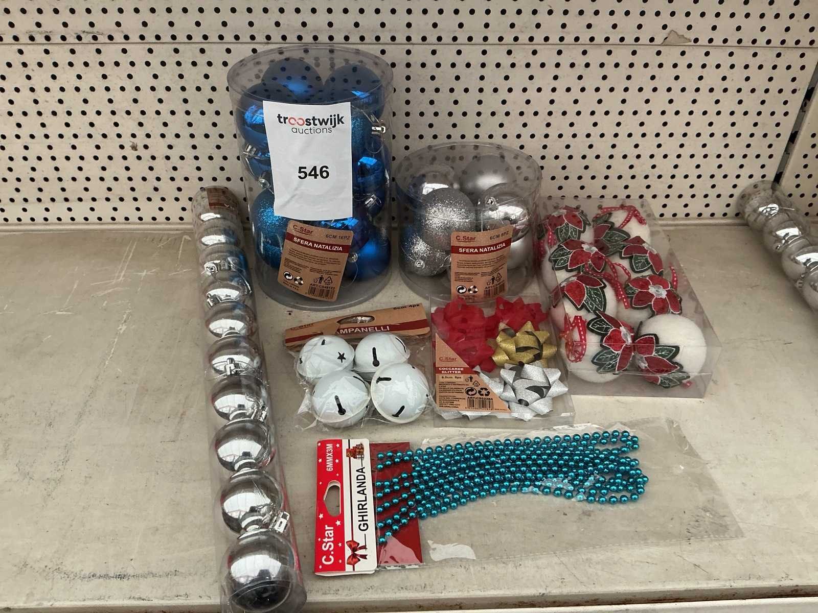 Partij kerstballen en kerstversiering.