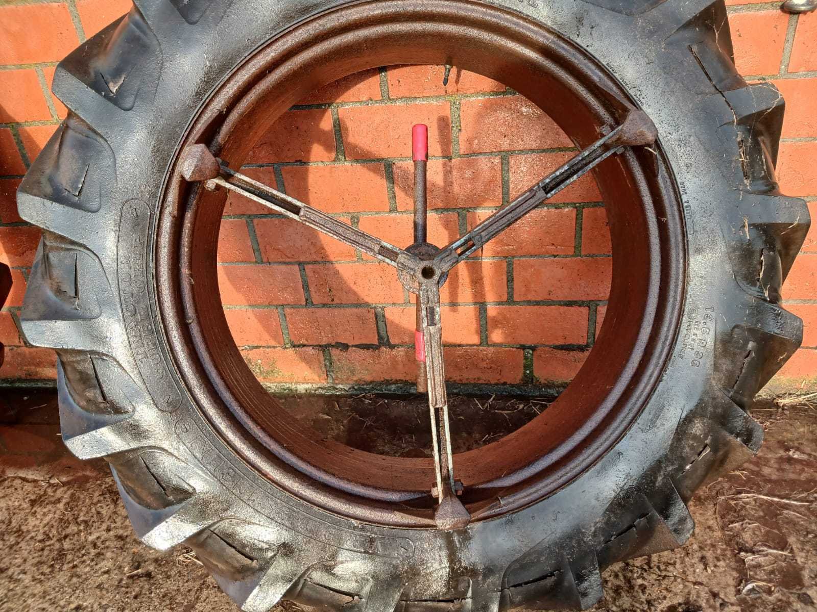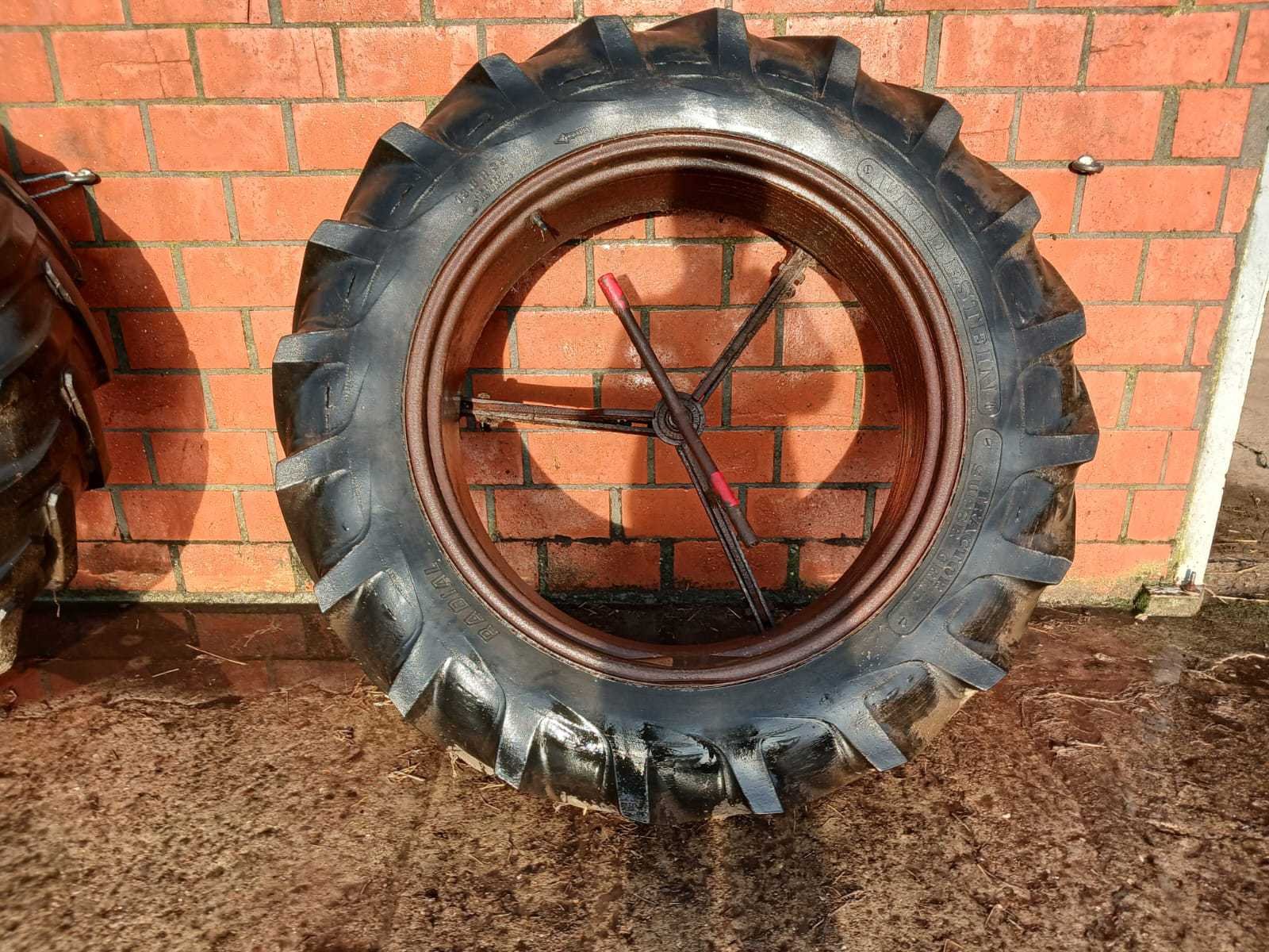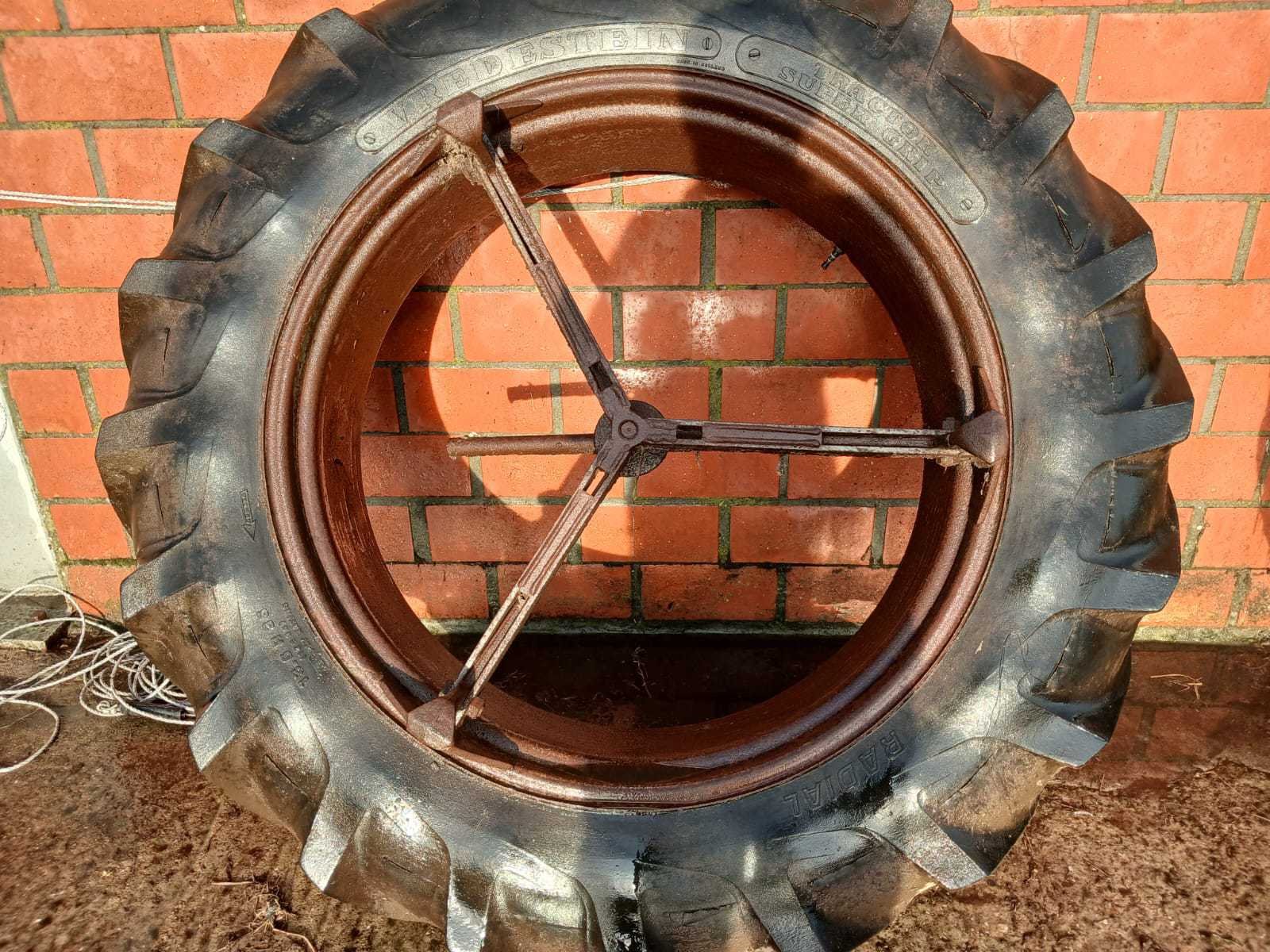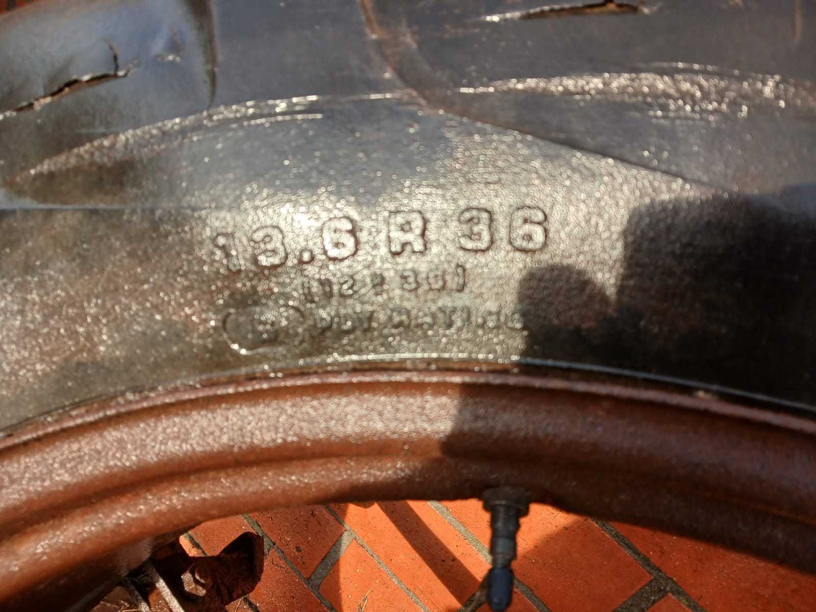 Set van 2 Vredestein Tractor Super Grip banden, maat 13.6 R36, gemonteerd op stalen velgen met verbindingsarmen voor dubbelmontage. Ideaal als extra set voor landbouwtractor (o.a. International, Ford, Deutz, Massey Ferguson e.a.) - Kenmerken: Type: Vredestein Tractor Super Grip (radiaal) - Maat: 13.6 R36 - Stalen velgen met dubbele koppeling - Compleet geleverd (2 wielen met verbindingsarmen) -Geschikt voor montage als dubbel lucht - Profiel goed zichtbaar, maar met scheuren in rubber (zie foto’s) - Velgen roestig, maar stevig en bruikbaar - Staat: Gebruikt – banden met droogtescheuren, velgen met roestvorming. Geschikt voor tijdelijk gebruik, demo of revisie. Merk: Vredestein Type: Tractor Super Grip Radial Bandenmaat: 13.6 R36