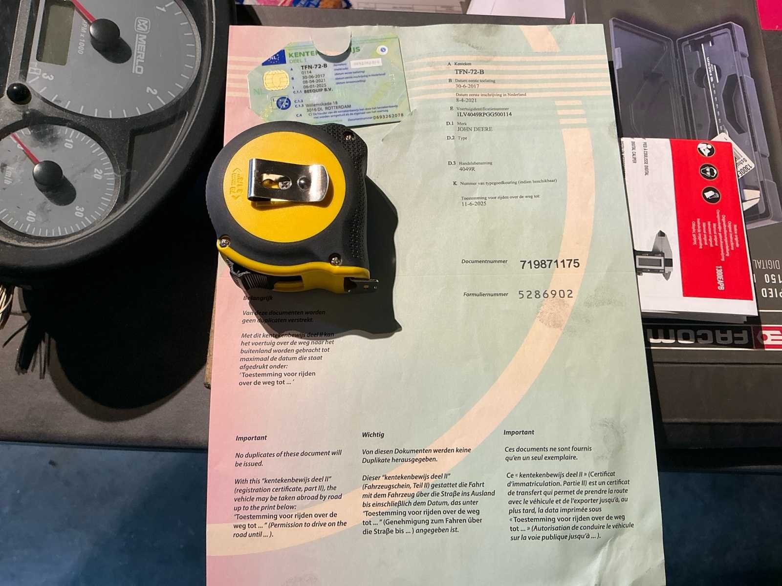 Merk: John Deere Type: 4049R Bouwjaar: 2017 Motorvermogen (kW): 36kW Afgelezen urenstand: 1730 Aantal hydraulische ventielen voor: 1 Aantal hydraulische ventielen achter: 2 Cabine: true Luchtgeveerde stoel: true Chassisnummer: 1LV4049RPGG500114 Datum eerste toelating: 30/06/2017 Nationaliteit documenten: Nederlands