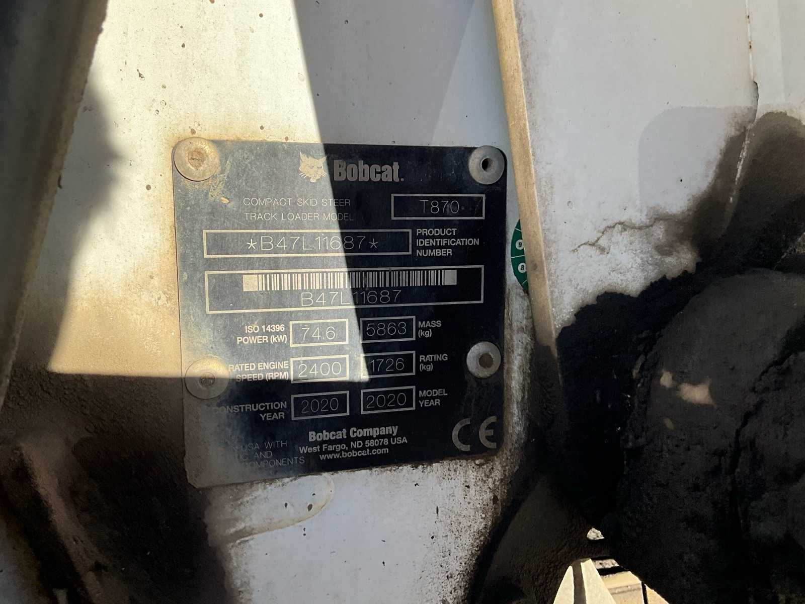 De Bobcat wordt verkocht met de GPS, GPS-gids en grondverzetsysteem. Merk: Bobcat Type: T 870 Bouwjaar: 2020 Serienummer: B47L11687 Merk motor: Bobcat Motorvermogen (kW): 75kW Afgelezen urenstand: 1556