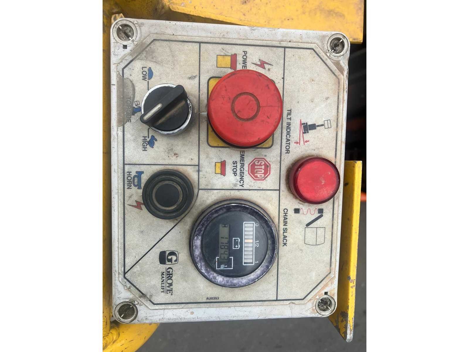 Max. wind snelheid: 8,3m/s Spanning: 24V Merk: Grove Type: Toucan 1100 C Bouwjaar: 2001 Serienummer: 1099 Schaarhoogwerker: false Masthoogwerker: true Werkhoogte: 11000mm Platform capaciteit: 200kg Afgelezen urenstand: 1400 Eigen gewicht: 3500kg Totale afmeting Hoogte: 2190mm