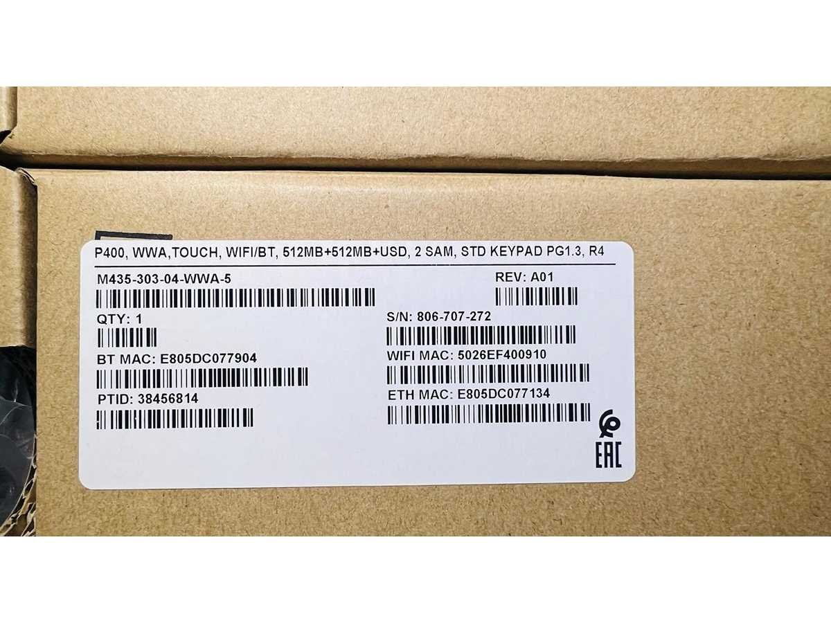 ONGEBRUIKT: VERIFONE PAYMENT TERMINAL P400 WWA TOUCH WIFI/BT 512MB USD 2SAM STD KEYPAD PG1.3 R4 Merk: Verifone Model: Payment Terminal