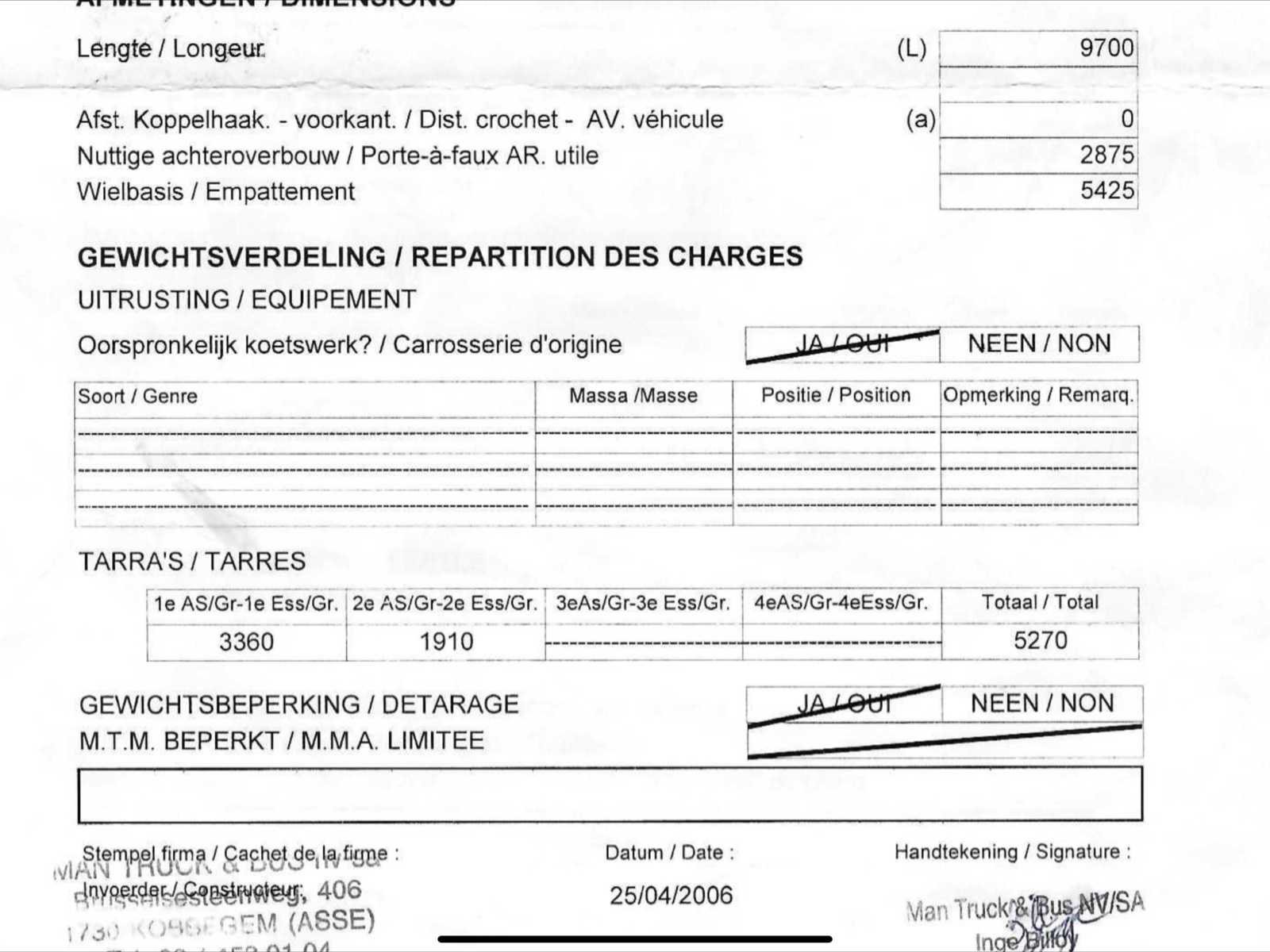 * Opbouw en uitrusting Koelopbouw: VéDéCar – geïsoleerde gesloten laadruimte Afmetingen binnenruimte (geschat): ± 7,0 m lang × 2,4 m breed × 2,3 m hoog Koelunit: Thermo King TS-200 (diesel-elektrisch) Status: koeling NIET WERKEND Laadklep: Hydraulische achterklep aanwezig Toepassing: gekoeld transport van groenten, fruit of exoten * cabine: Staat: Gebruikssporen in interieur, enkele panelen ontbreken of beschadigd * opmerkingen: Koelinstallatie niet werkend Visueel verzorgde vrachtwagen met normale gebruikssporen aan opbouw en chassis; START EN RIJDT Interieur met lichte slijtage Automatische versnellingsbak, luchtvering en laadklep. Merk: MAN Type: TGM 18.240 Bouwjaar: 2006 Chassisnummer VIN: WMAN18ZZ66Y170203 Cilinderinhoud: 6871cc Kilometerstand bij opname: 933047km Datum eerste toelating: 29/06/2006 Type transmissie: Automatisch Aantal assen: 2 Laadvermogen: 9320kg Emissieklasse: Euro 3 Hydraulische laadklep: true Gesloten opbouw: true Eigen gewicht: 9280kg Totale afmeting L: 9700mm Nationaliteit documenten: B Aantal zitplaatsen: 2 Automaat: true Diesel: true