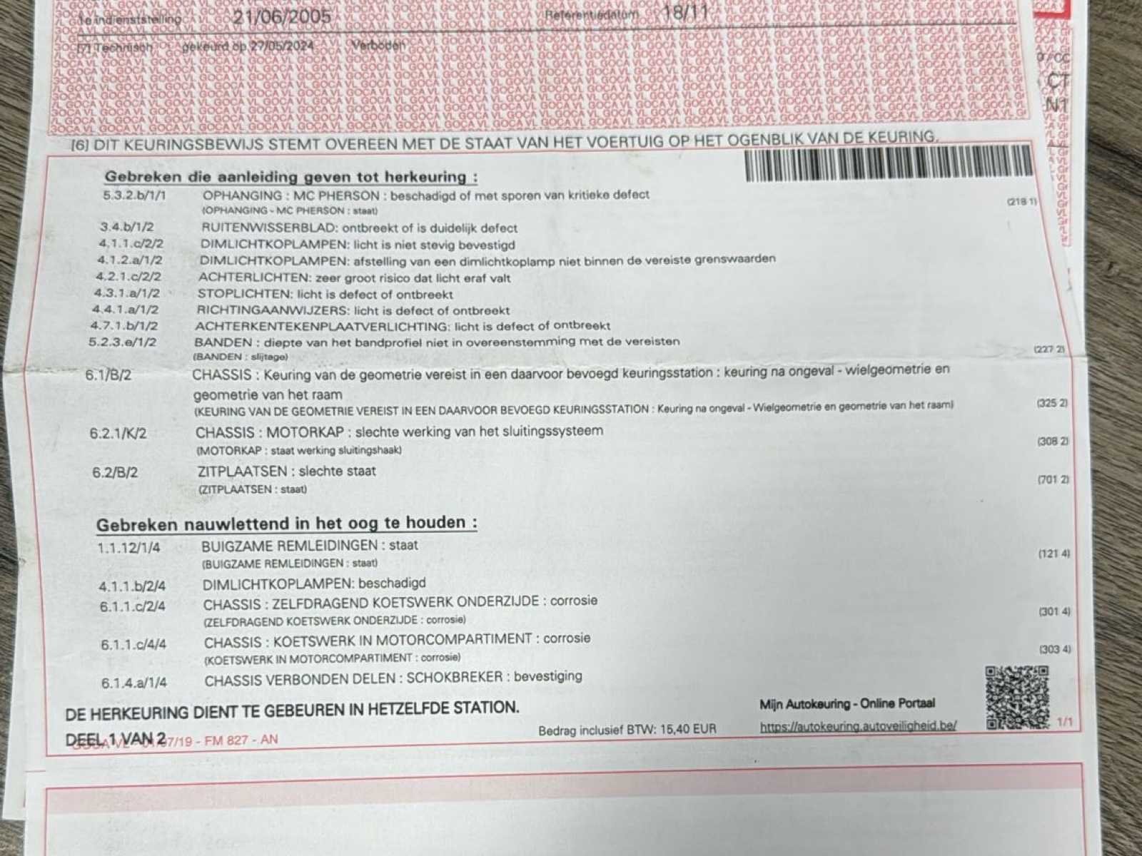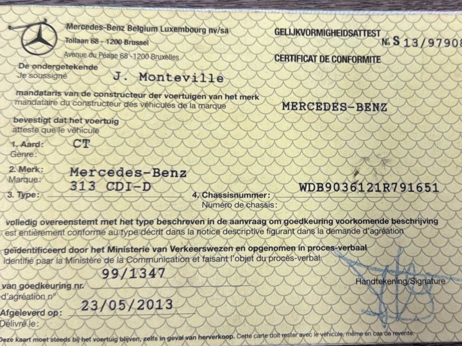 Mercedes-Benz Sprinter 313 CDI uit 2005 met gesloten boxopbouw en werkende Dhollandia laadklep (1000 kg). Laadruimte (LxBxH) 345×195×215 cm. Voertuig heeft ongevalschade vooraan maar start en rijdt (met booster). Meerdere gebreken en roest aanwezig. Laatste keuring: afgekeurd/verboden tot het verkeer. Pluspunten: Start & rijdt (met booster) Werkende Dhollandia laadklep van 1000 kg Ruime laadbak: 345×195×215 cm → geschikt voor transport, koeriers, food, materialen Degelijke Mercedes CDI-motor (OM646-type, lange levensduur) Documenten volledig aanwezig Merk: Mercedes-Benz Model: Sprinter Type: - laadklep Bouwjaar: 2005 Afgelezen kilometerstand: 476544km Cilinderinhoud: 2148cc Vermogen (kW): 95kW Brandstof: diesel Chassisnummer: WDB9036121R791651 Laadvermogen: 1240kg Datum eerste toelating: 21/6/2005 Aantal zitplaatsen: 3 Kleur: wit Transmissie: manueel Emissieklasse: Euro 3 Ledig gewicht: 2260kg Nationaliteit documenten: B Gelijkvormigheidsattest aanwezig: true Start en rijdt: ja Zichtbare schade: ja Vavato voert geen technische keuring uit.: true Inschrijvingsbewijs - deel 1 : aanwezig Inschrijvingsbewijs - deel 2: aanwezig
