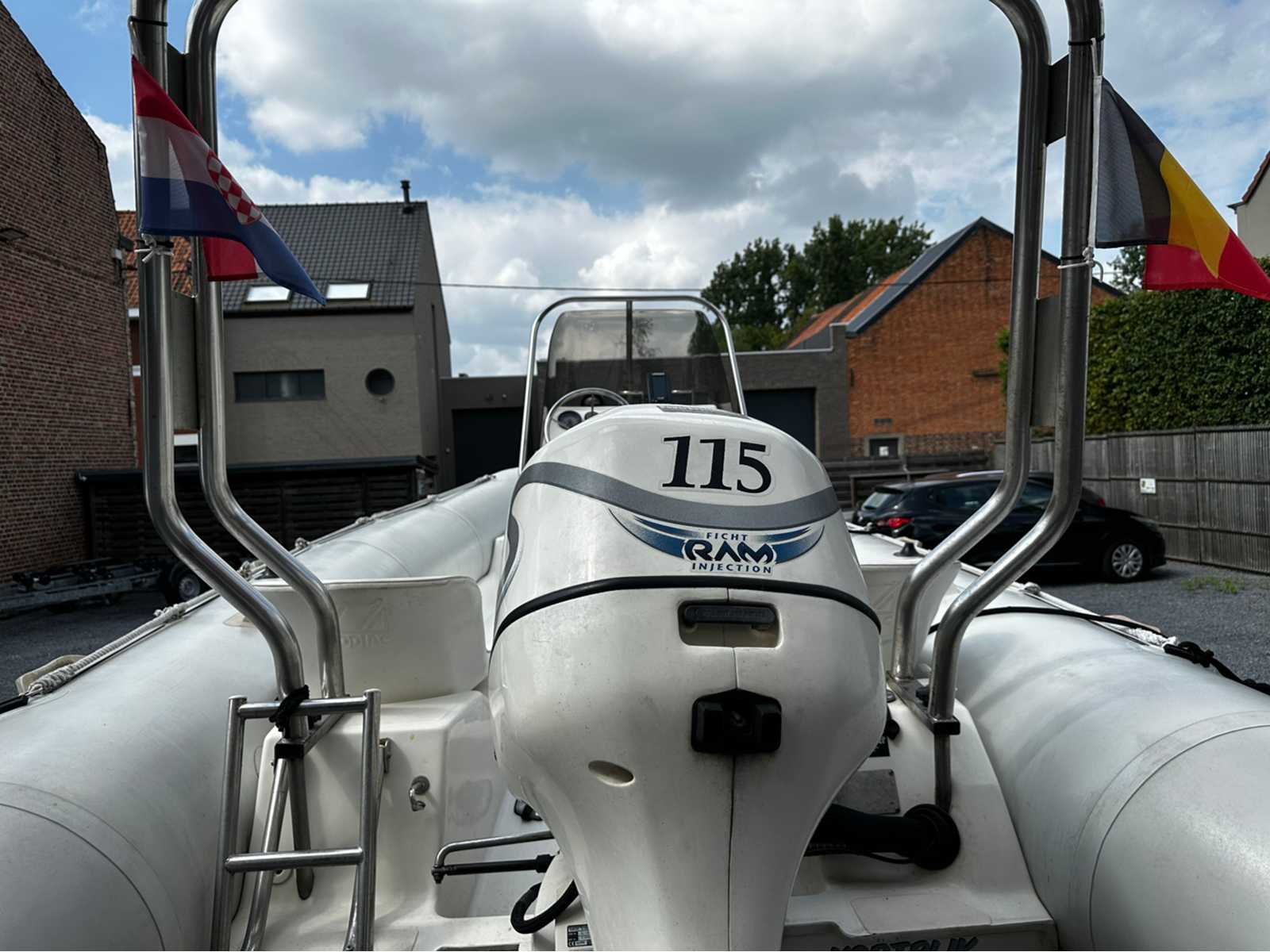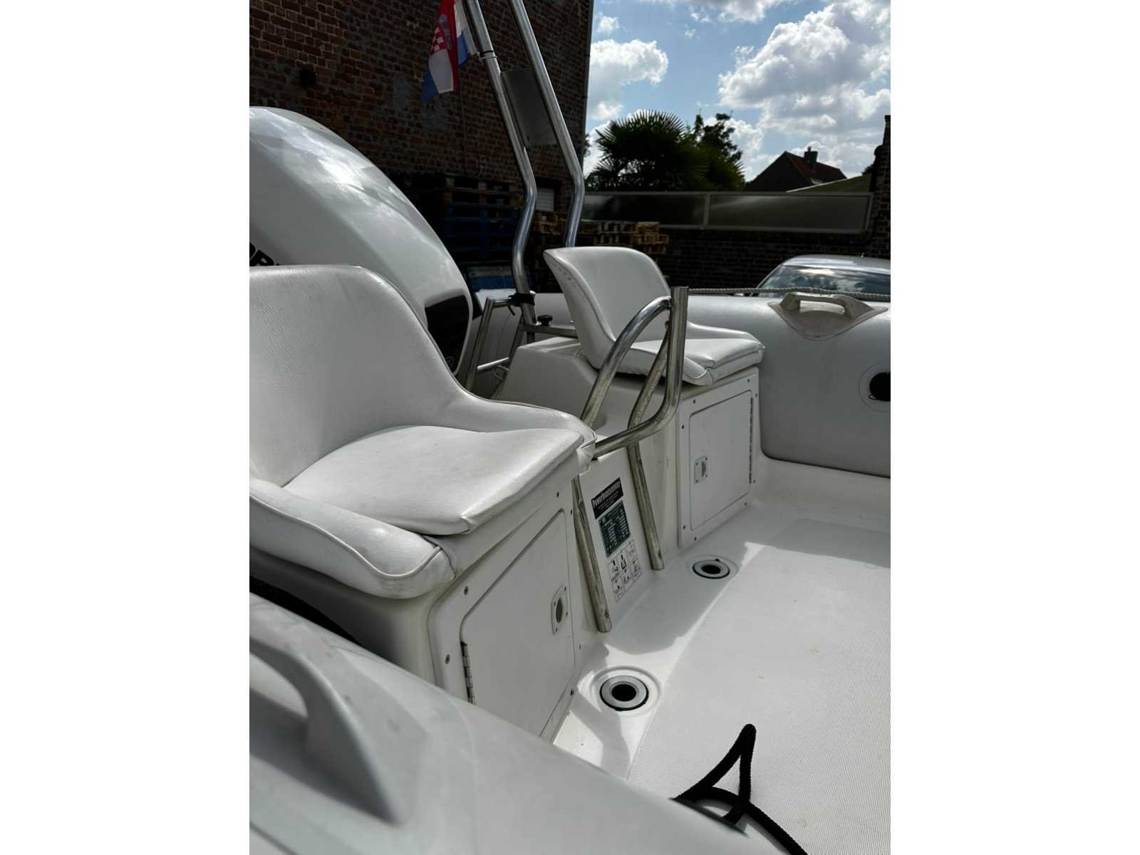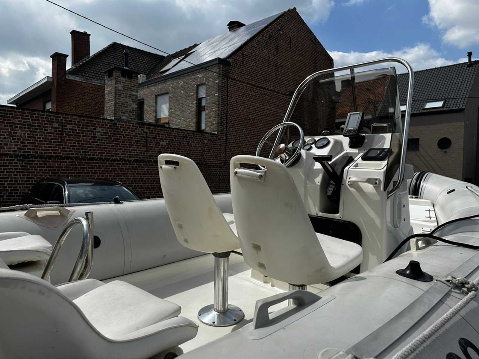 Merk: Zodiac Type: PRO Open 550 Rompmateriaal: Rubber Brandstof: Benzine Bouwjaar: 1999 Lengte over alles: 5.5m Breedte formaat: 2.49m Registratie nummer: B402356 Type motor: Evinrude 115PK injectie Inhoud brandstoftank: 80l Navigatieverlichting: true Navigatie apparatuur: true Trailer merk + type: Riba BV 1300 bouwjaar 2000 Chassisnummer trailer: 101301200