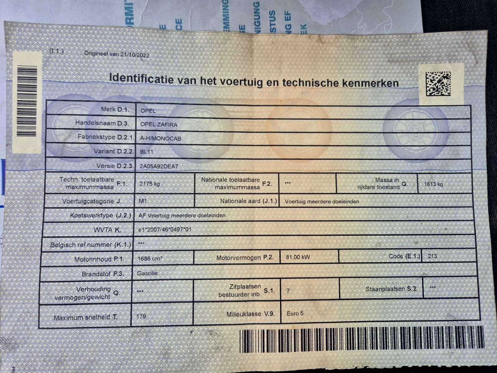 Achterraam glas stuk! Opgelet, deze auto zal niet worden gekeurd voor verkoop (van toepassing op Belgische particuliere kopers). Merk: Opel Model: Zafira Bouwjaar: 2011 Afgelezen kilometerstand: 234983km Cilinderinhoud: 1686cc Vermogen (kW): 81kW Brandstof: diesel Chassisnummer: W0L0AHM75B2109212 Emissieklasse: Euro5 Nationaliteit documenten: Belgisch Zichtbare schade: Zie foto’s + achterraam Inschrijvingsbewijs - deel 1 : Aanwezig Inschrijvingsbewijs - deel 2: Aanwezig