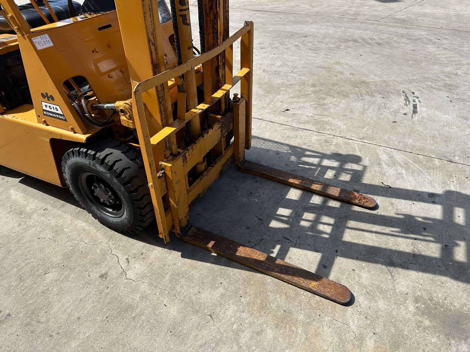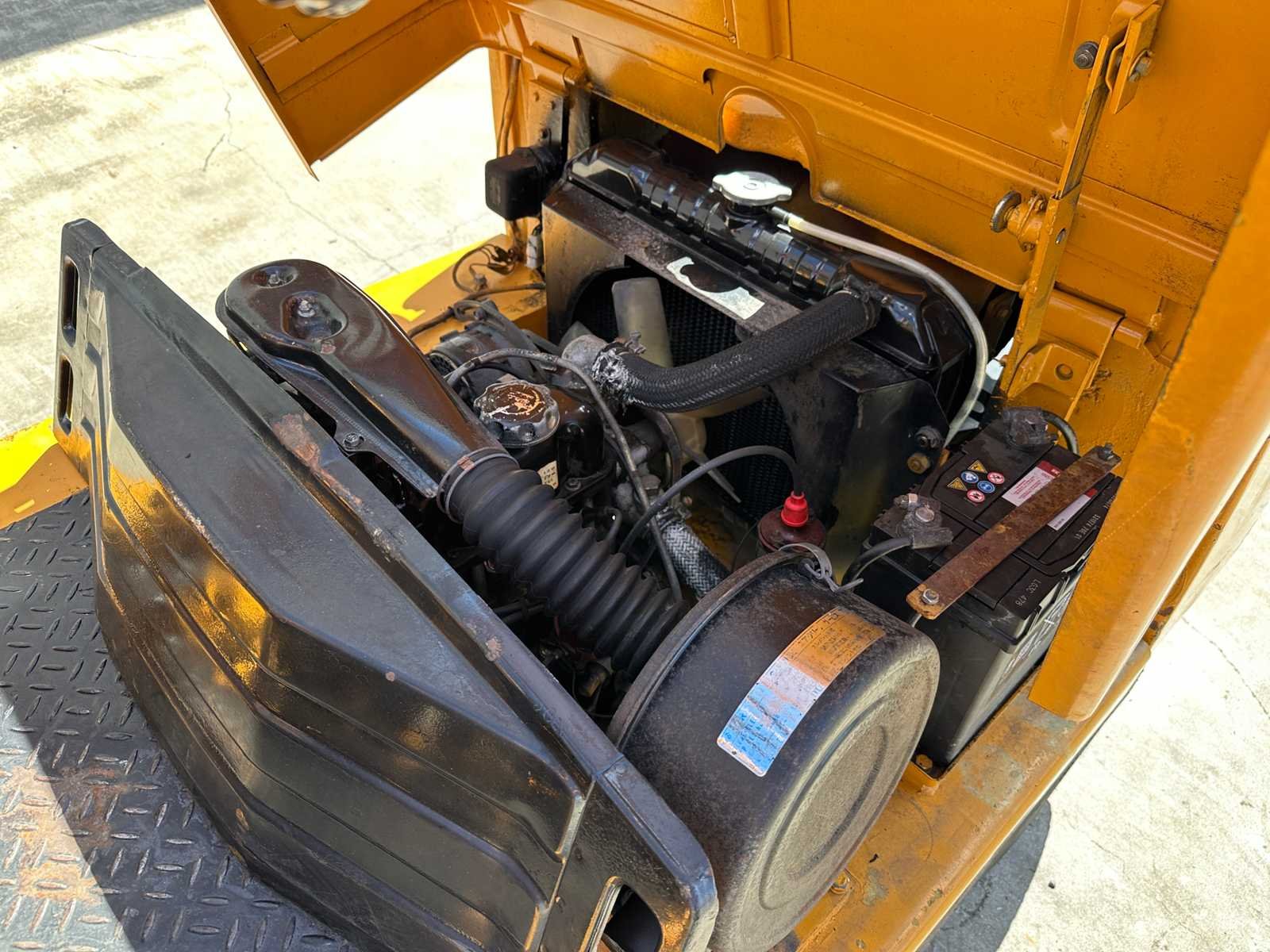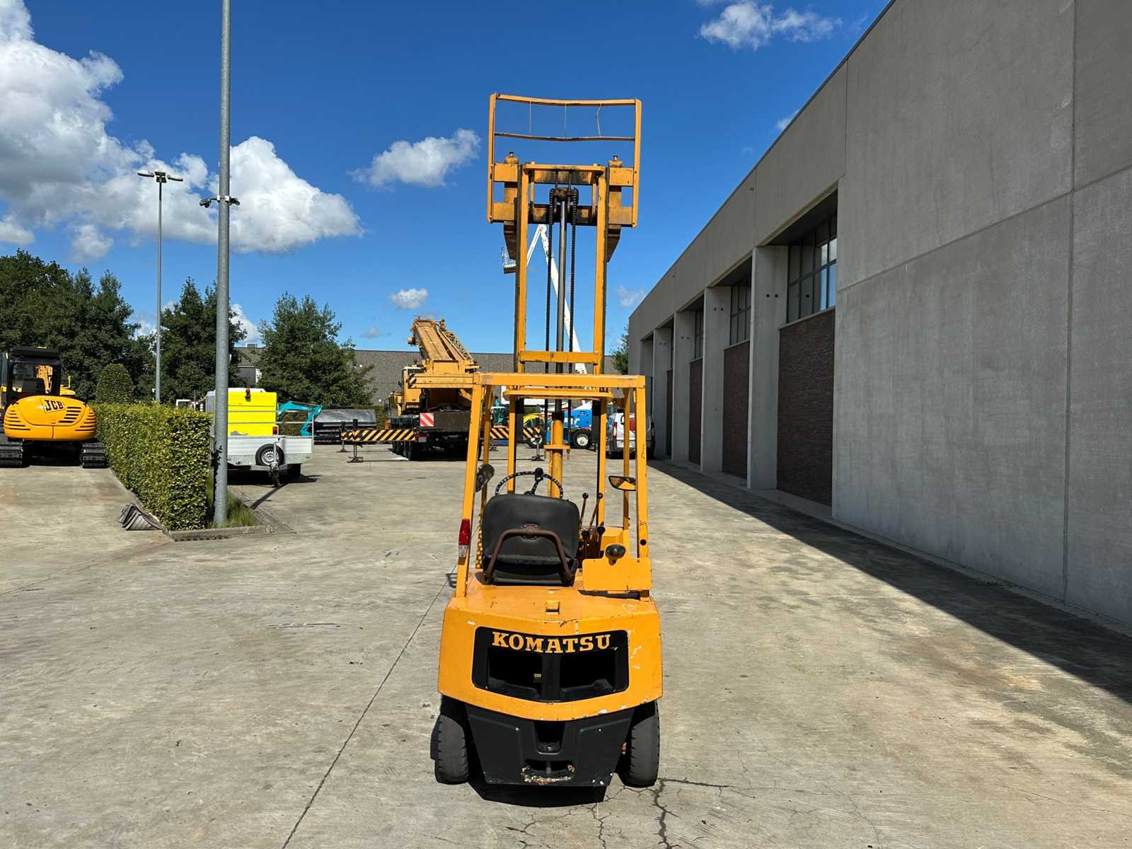 Manuele versnellingsbak Geen urenteller Geen documenten Merk: Komatsu Type: FG15-12 Bouwjaar: 1984 Serienummer: 102268 Brandstof: benzine Mast: 2-delig Soort band: lucht Aantal wielen: 4 Duplex mast: true Eigen gewicht: 2610kg Hefvermogen: 1500kg Lepellengte: 1000mm Max. hefhoogte: 3300mm Hefhoogte: 3000mm Totale afmeting L: 2200mm Totale afmeting Breedte: 1100mm Totale afmeting Hoogte: 2100mm
