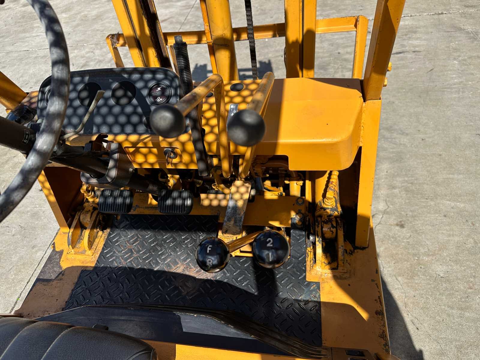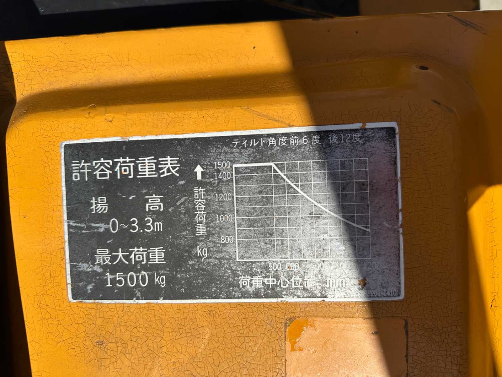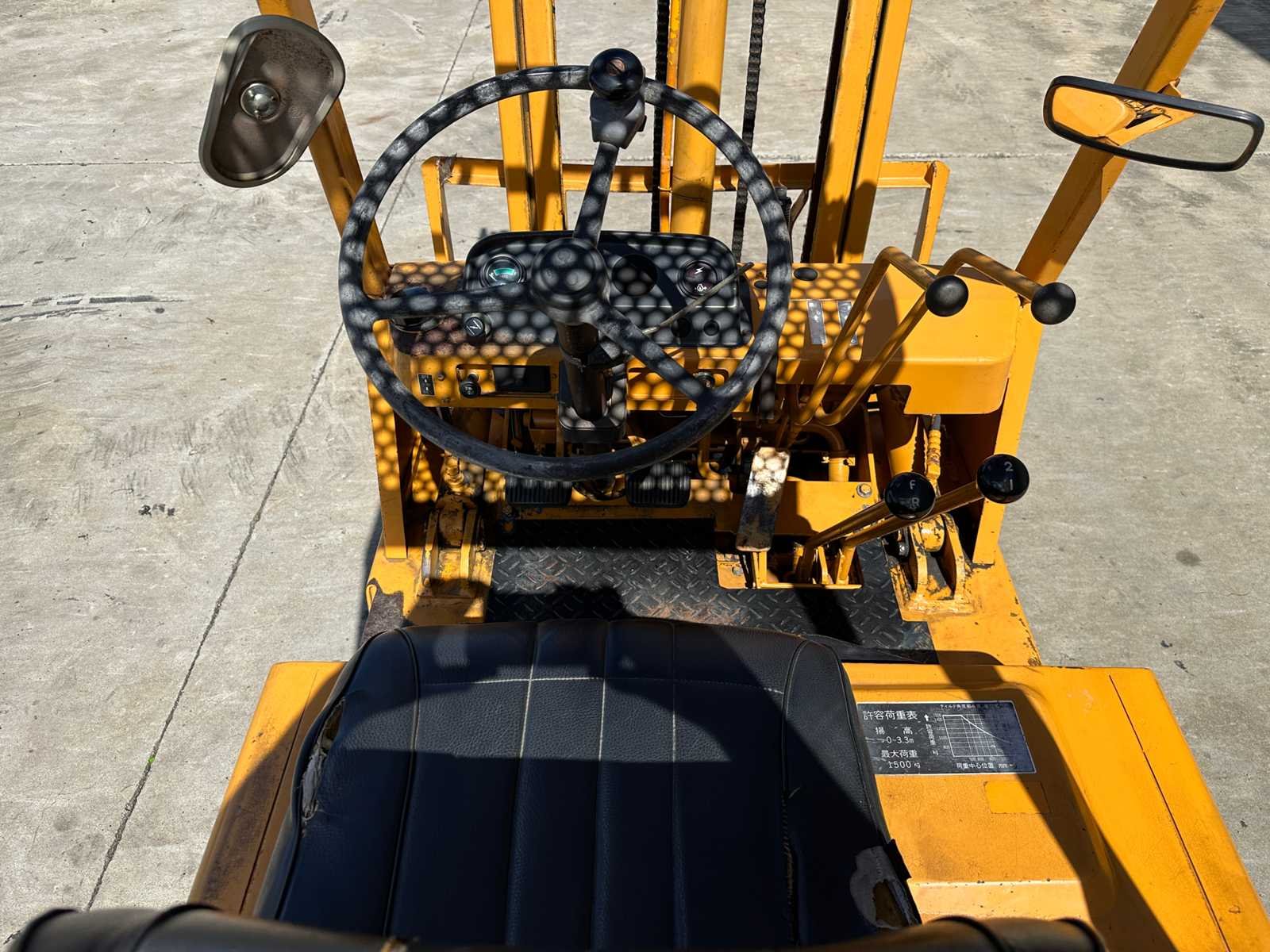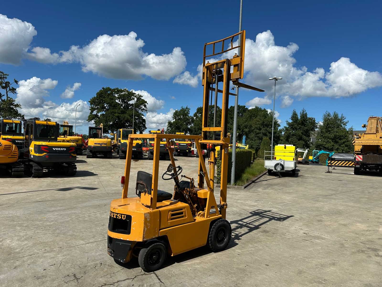 Manuele versnellingsbak Geen urenteller Geen documenten Merk: Komatsu Type: FG15-12 Bouwjaar: 1984 Serienummer: 102268 Brandstof: benzine Mast: 2-delig Soort band: lucht Aantal wielen: 4 Duplex mast: true Eigen gewicht: 2610kg Hefvermogen: 1500kg Lepellengte: 1000mm Max. hefhoogte: 3300mm Hefhoogte: 3000mm Totale afmeting L: 2200mm Totale afmeting Breedte: 1100mm Totale afmeting Hoogte: 2100mm