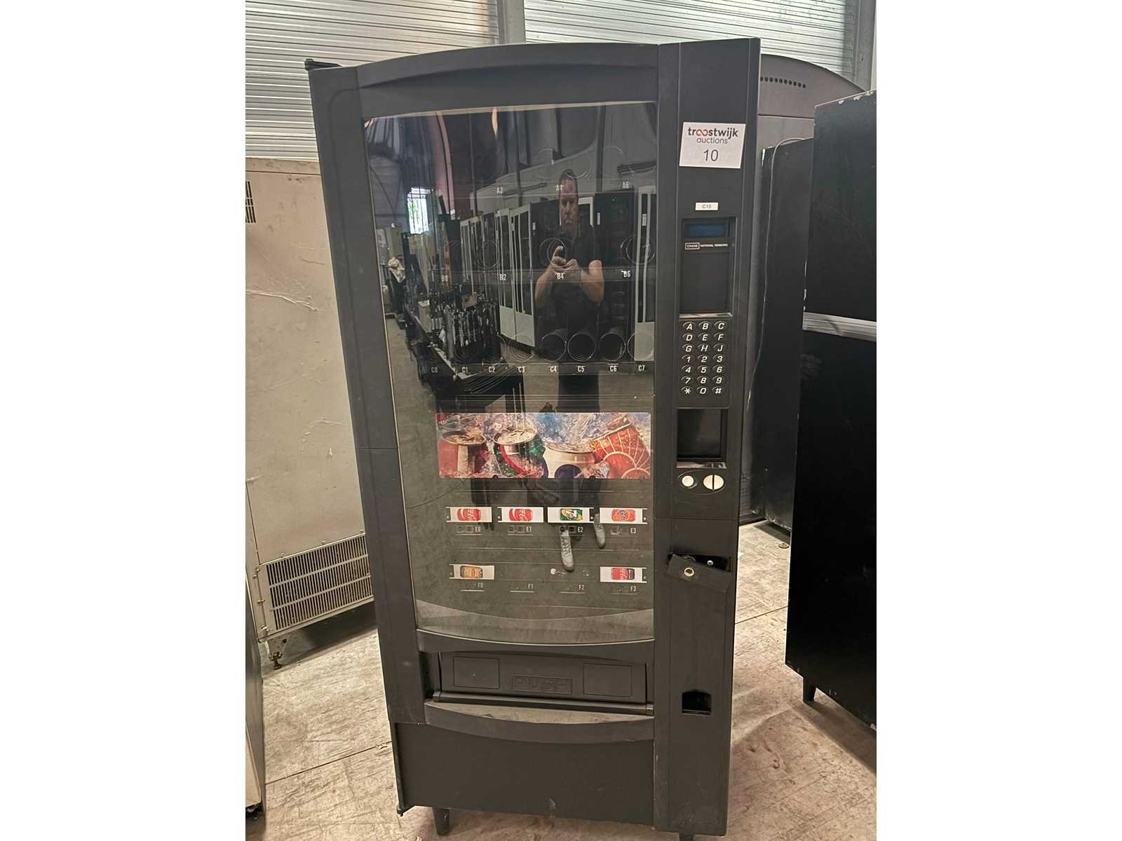 Combi automaat voor verkoop snacks en drank met spiralen en blikmodule in staat waarin toestel zich bevindt Merk: Crane Model: Combi Gewicht: 300kg Lengte: 100cm Breedte: 85cm Hoogte: 183cm