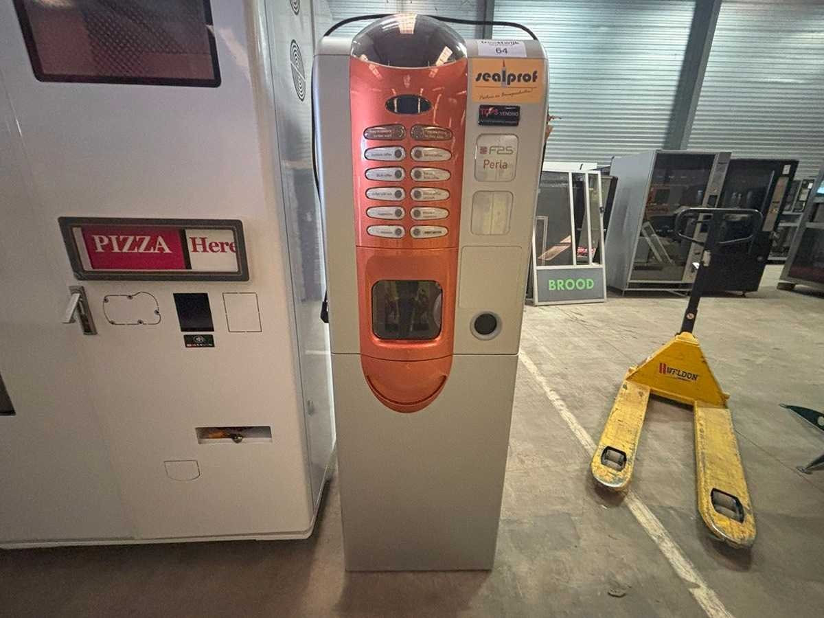 Koffie automaat met onderkast in staat waarin toestel zich bevindt Merk: FAS Model: Perla Product type: Koffie Gewicht: 150kg Lengte: 70cm Breedte: 70cm Hoogte: 183cm