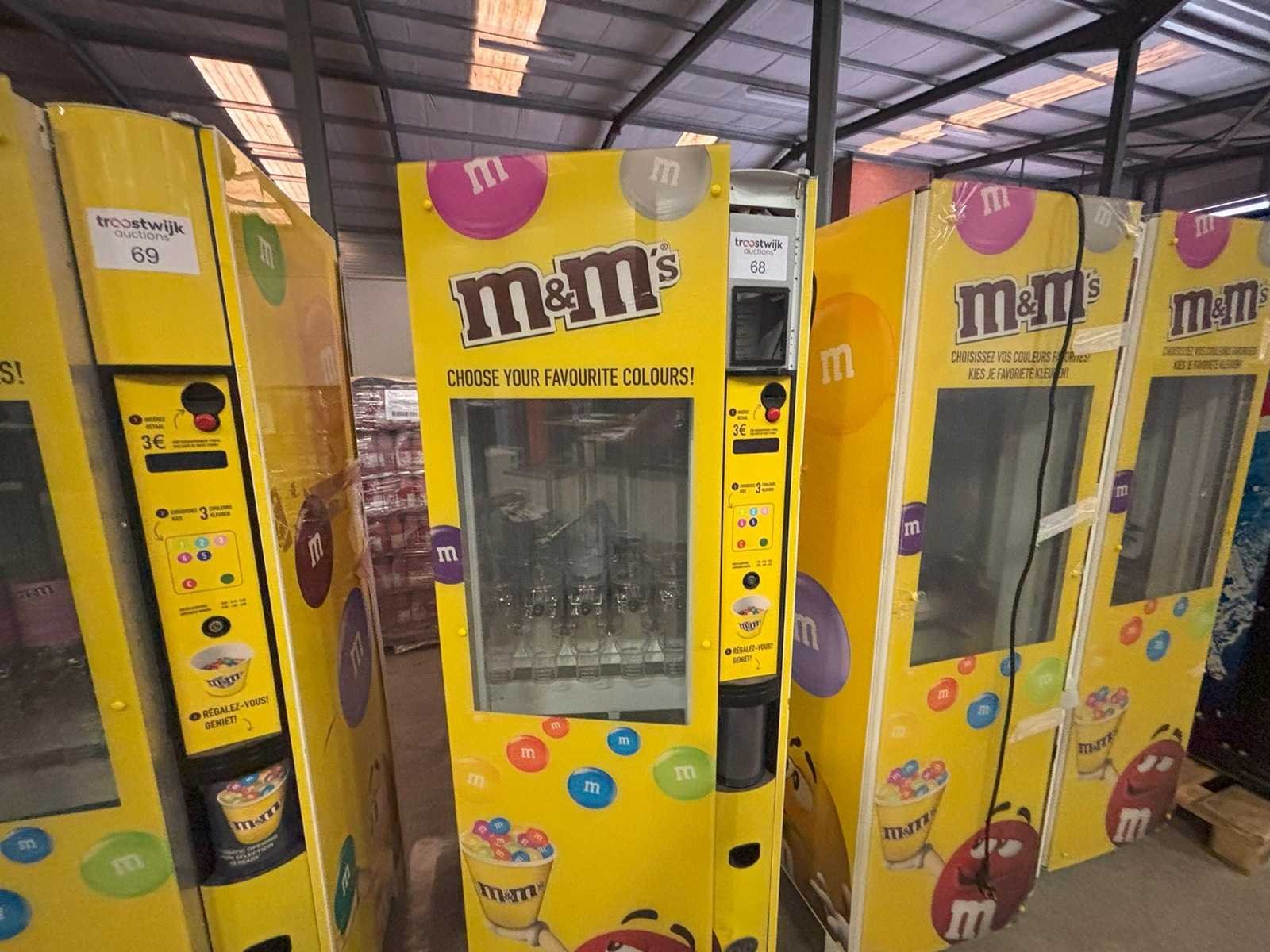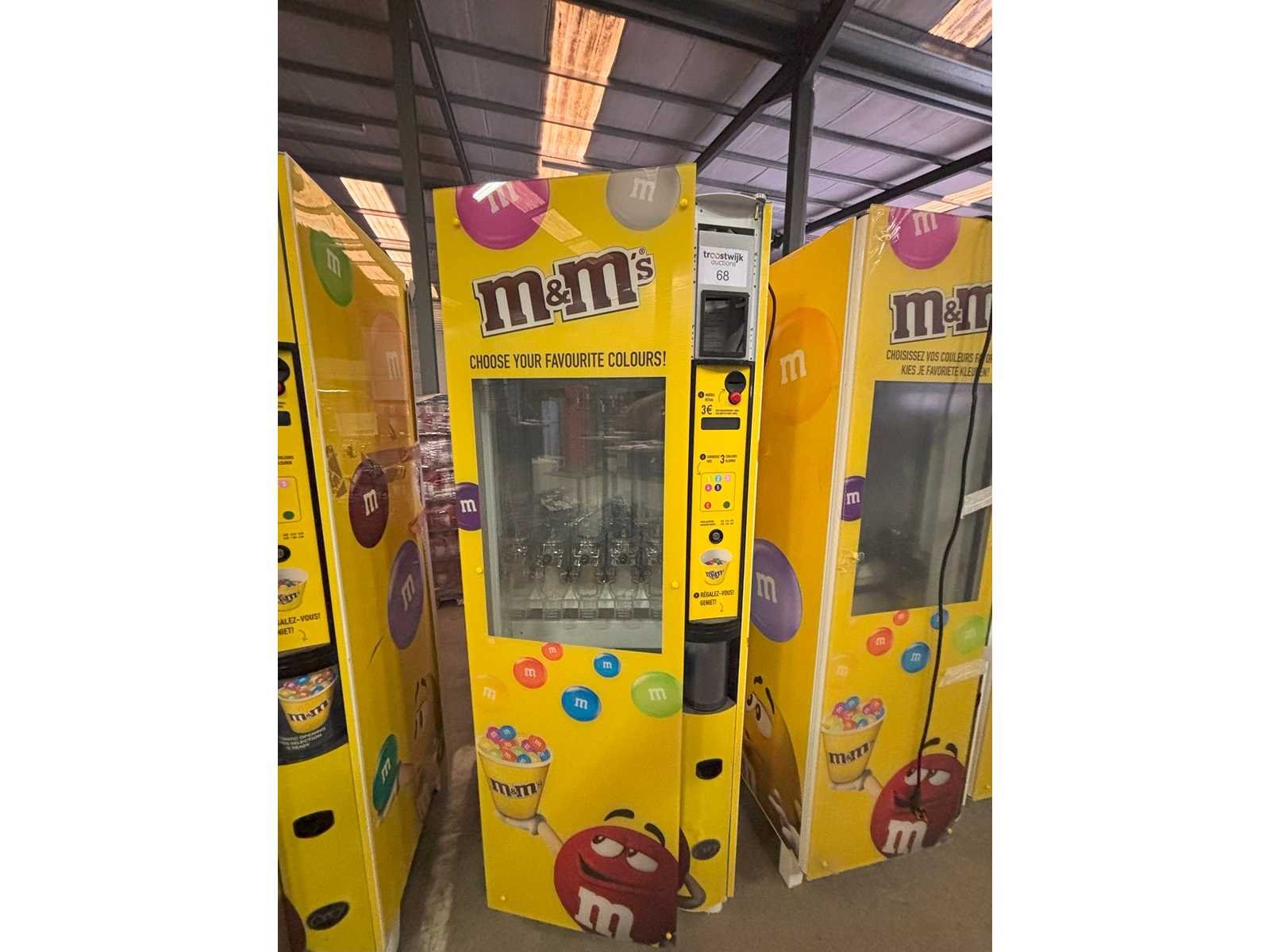 Automaat voor verkoop van M&M's of andere soorten snoep of nootjes in staat waarin toestel zich bevindt Merk: Ducale Model: Bulkvendor Kleur: Geel Gewicht: 250kg Lengte: 80cm Breedte: 80cm Hoogte: 183cm