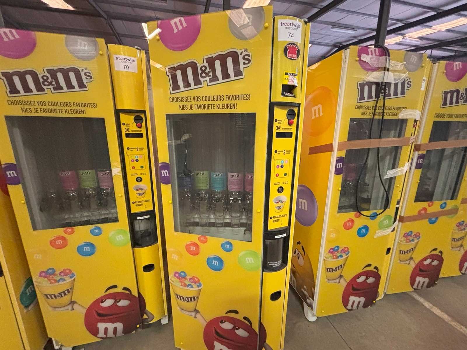 Automaat voor verkoop van M&M's of andere soorten snoep of nootjes in staat waarin toestel zich bevindt Merk: Ducale Model: Bulkvendor Kleur: Geel Gewicht: 250kg Lengte: 80cm Breedte: 80cm Hoogte: 183cm