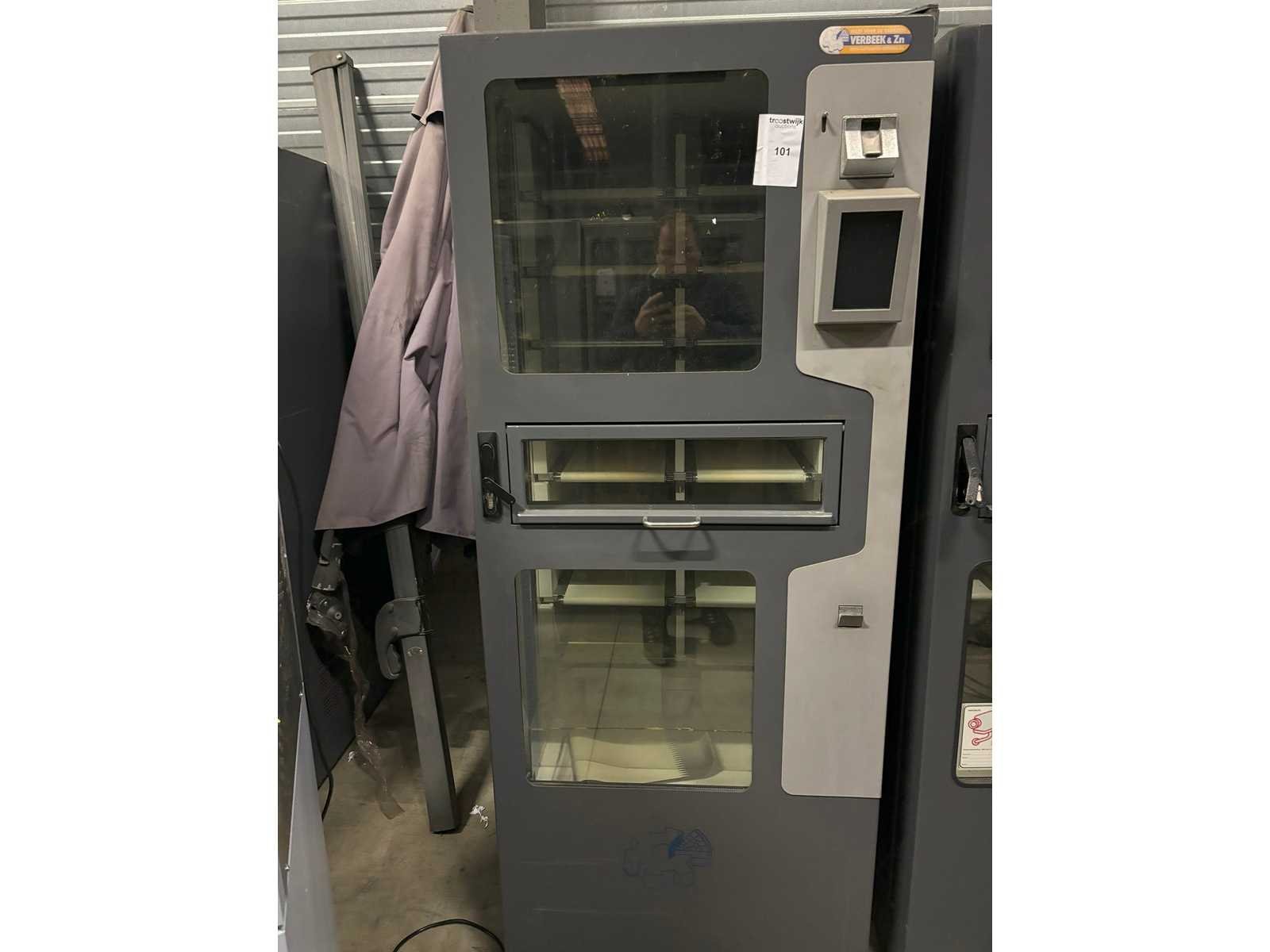 Broodautomaat met lift en zeer grote capaciteit Iin staat waarin toestel zich bevindt Merk: V90 Model: Brood & voeding Gewicht: 550kg Lengte: 220cm Breedte: 100cm Hoogte: 190cm