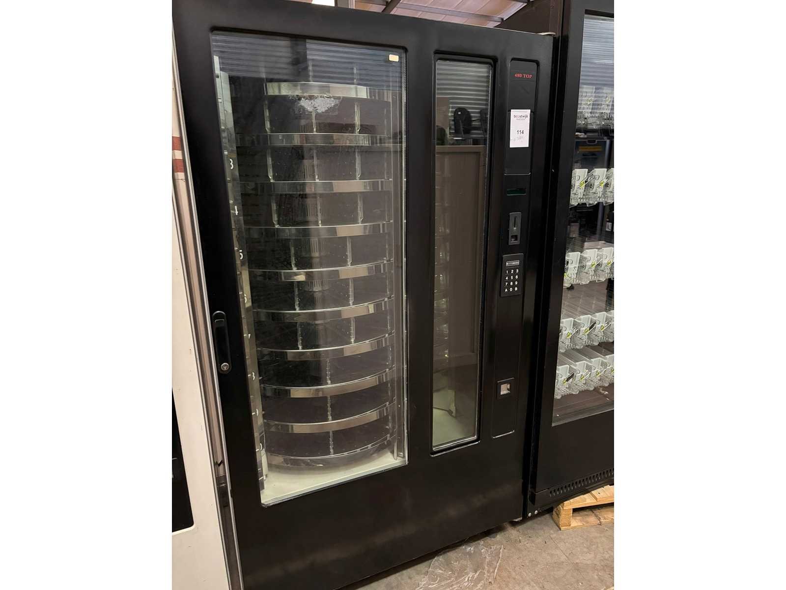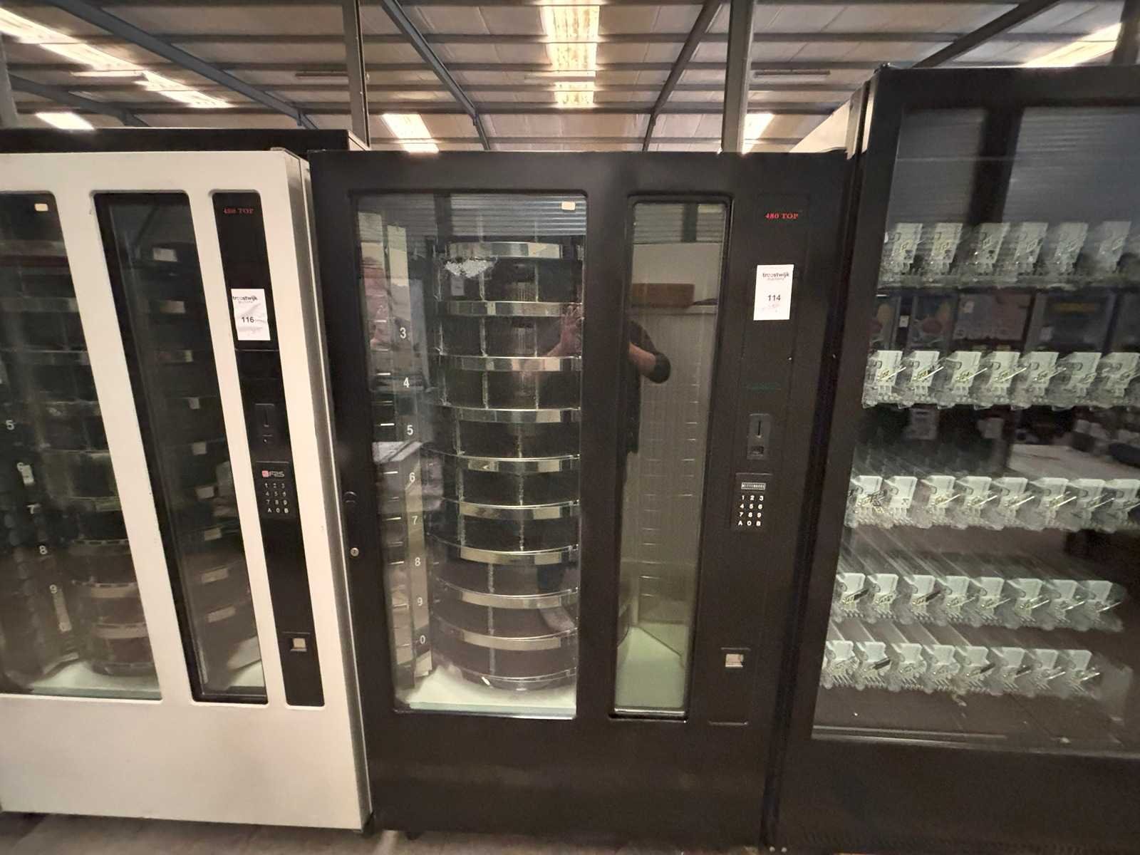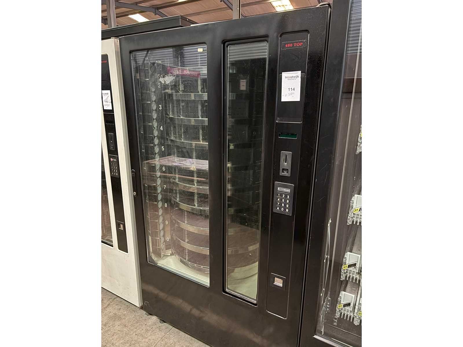 Voedingsautomaat met 10 plateaus voor verkoop van diverse producten in staat waarin toestel zich bevindt Merk: FAS Model: 480/10 Gewicht: 290kg Lengte: 105cm Breedte: 80cm Hoogte: 183cm