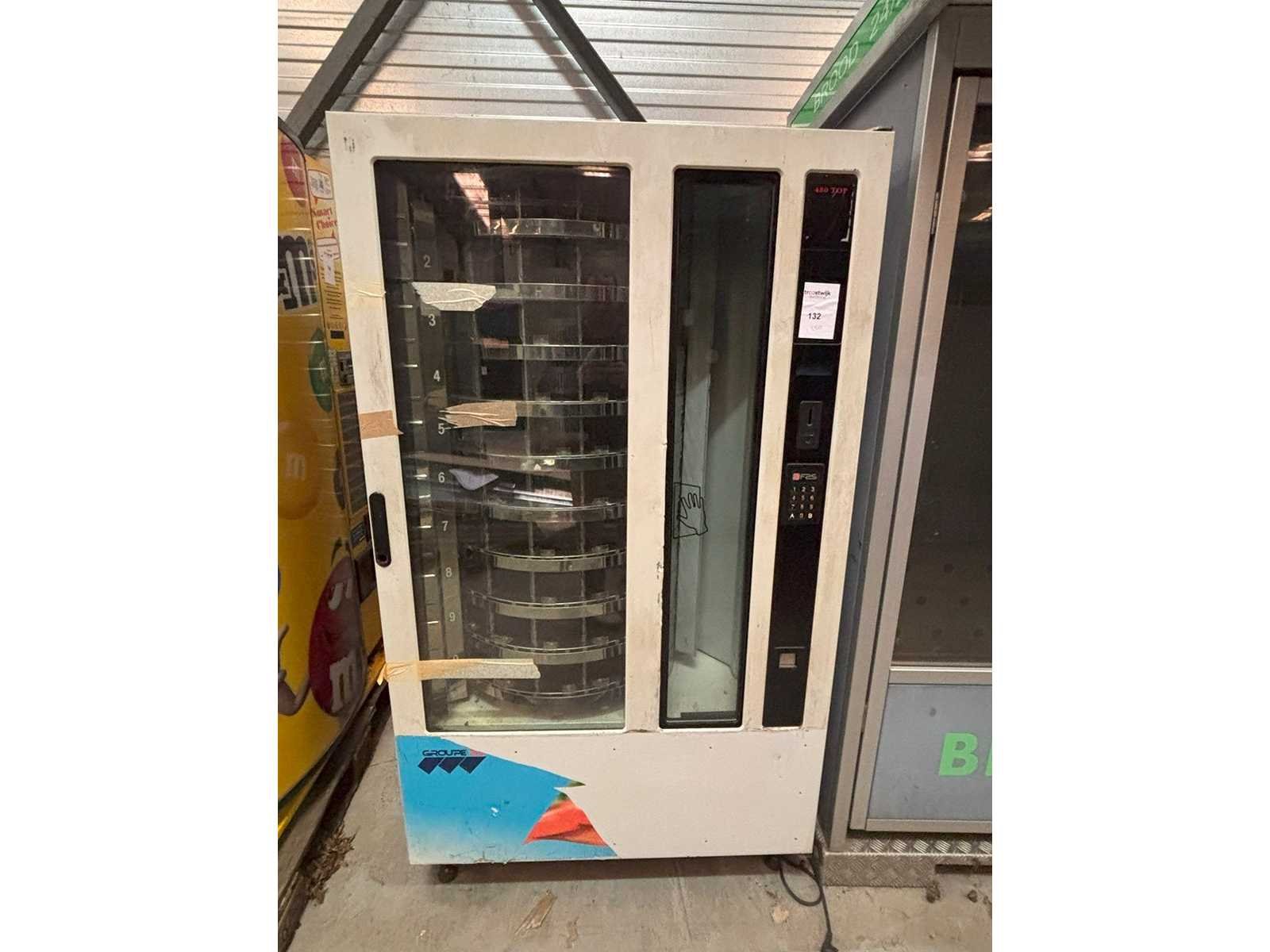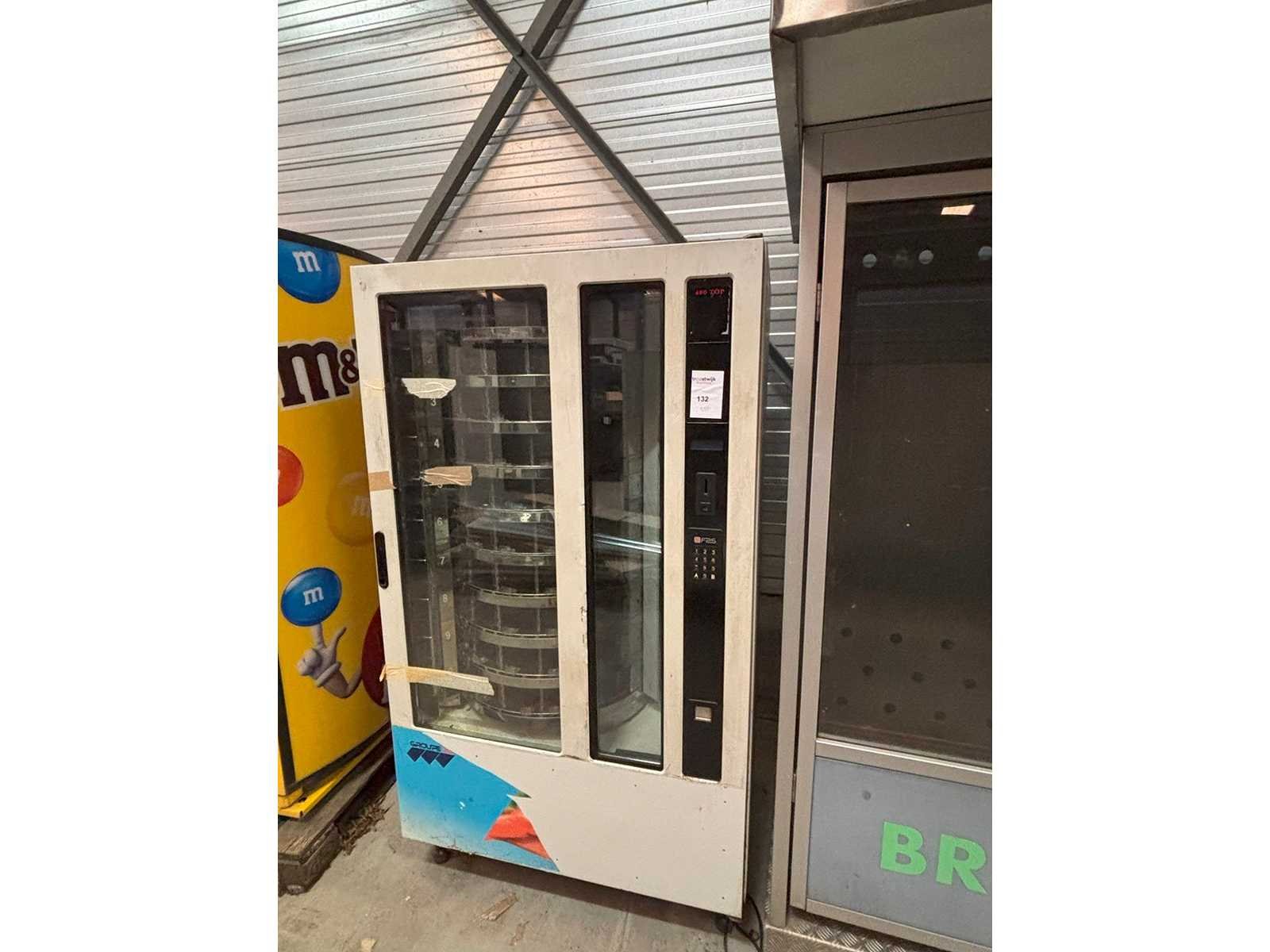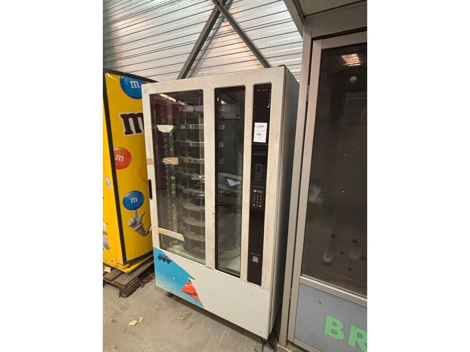 Voedingsautomaat 10 selecties voor verkoop van diverse producten in staat waarin toestel zich bevindt Merk: FAS Model: 480/10 Gewicht: 300kg Lengte: 105cm Breedte: 80cm Hoogte: 183cm