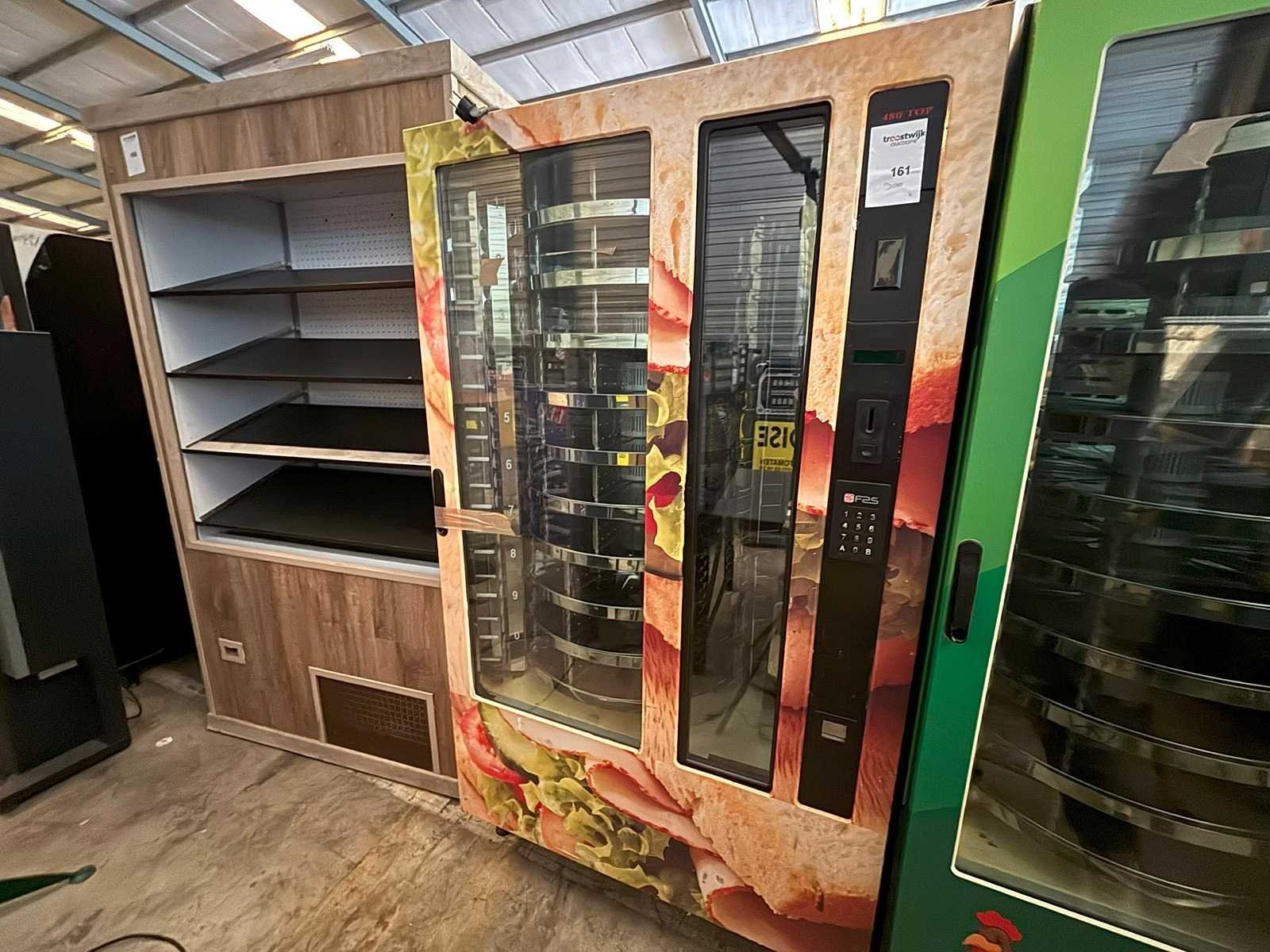 Voedingsautomaat met 10 selecties voor verkoop van diverse soorten producten, in staat waarin toestel zich bevindt Merk: fas Model: 480/10 Gewicht: 300kg Lengte: 105cm Breedte: 80cm Hoogte: 183cm