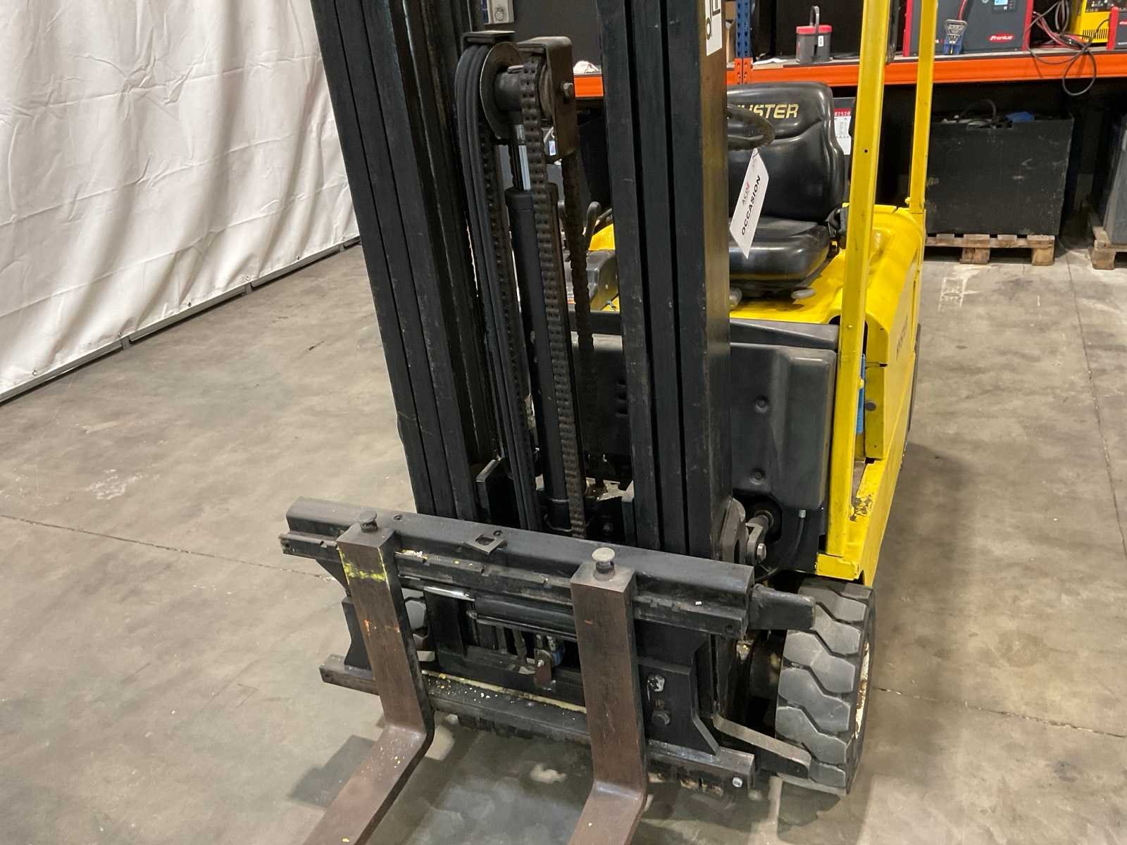 In werkende staat . 6500mm hefhoogte. Batterijlader inclusief Merk: Hyster Type: J2,00XMT Bouwjaar: 2000 Serienummer: G160A03763X Brandstof: Elektrisch Mast: Triple Soort band: Volrubber banden Aantal wielen: 3 Afgelezen urenstand: 14750 Accu lader: true Free-lift: true Triple mast: true Hefvermogen: 2000kg Lepellengte: 1000mm Max. hefhoogte: 6500mm Vol rubber banden: true