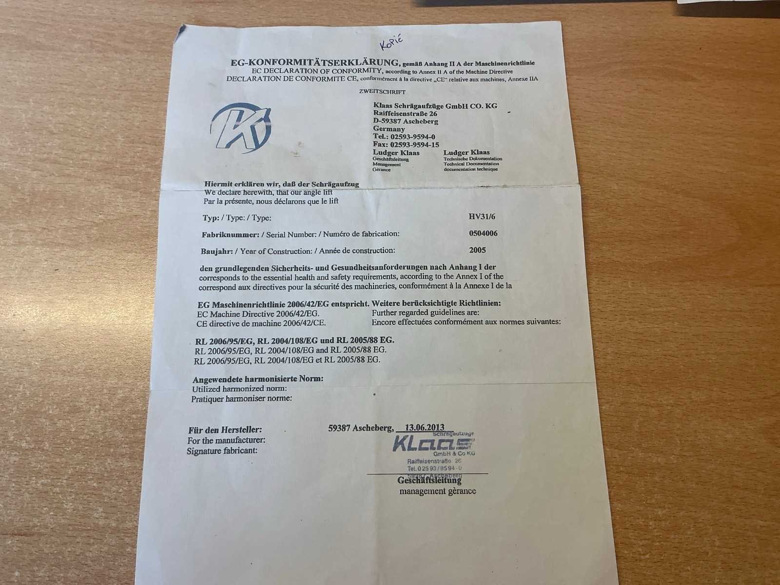 2005 klaas s1 verhuislift