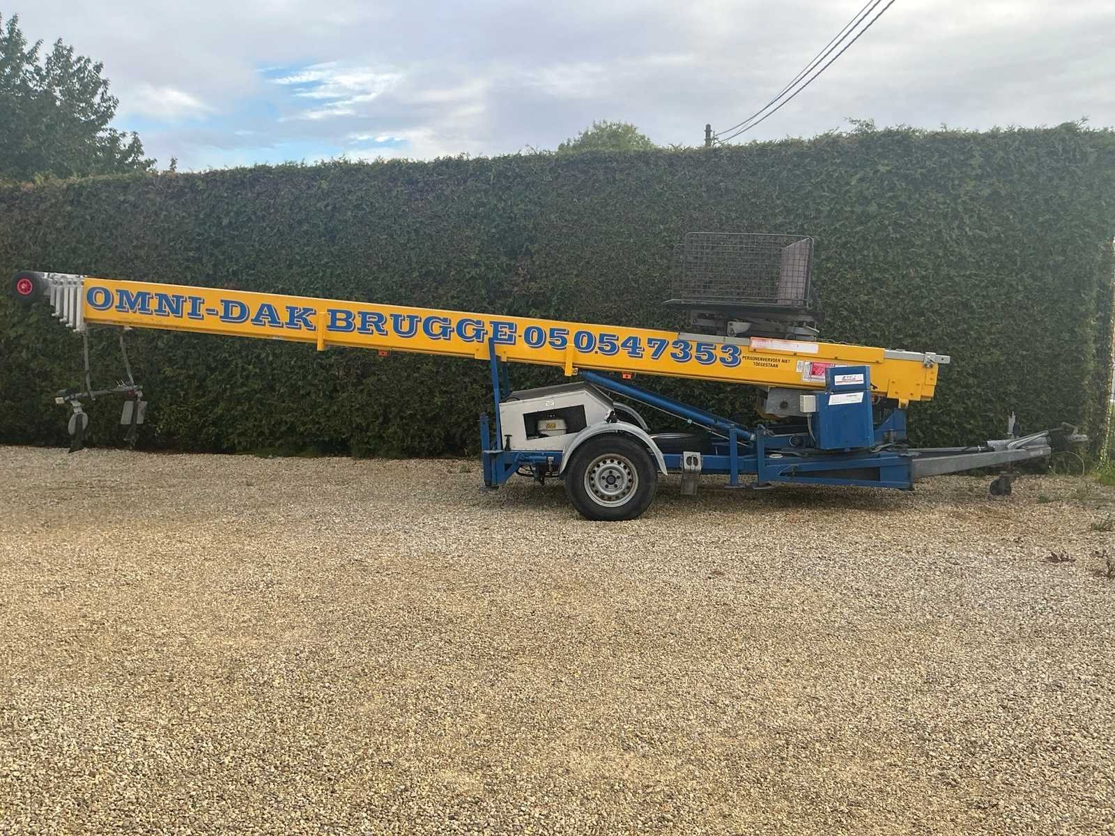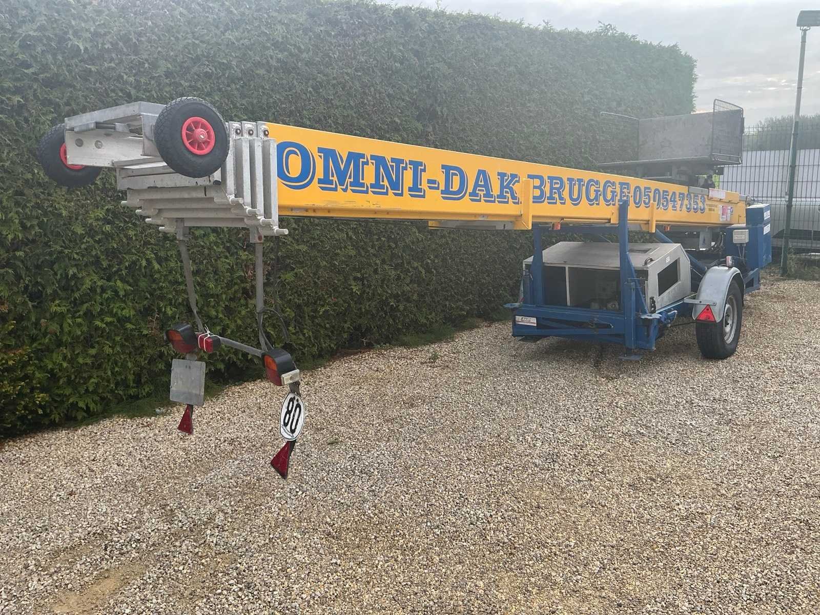Afmetingen zijn in transportstand Merk: Klaas Type: S1 Bouwjaar: 2005 Serienummer: 2716 Kenteken: 1QDO637 Max. platformhoogte: 21m Max. belasting: 300kg Eigen gewicht: 900kg Totale afmeting L: 5900mm Totale afmeting Breedte: 1350mm Totale afmeting Hoogte: 1500mm