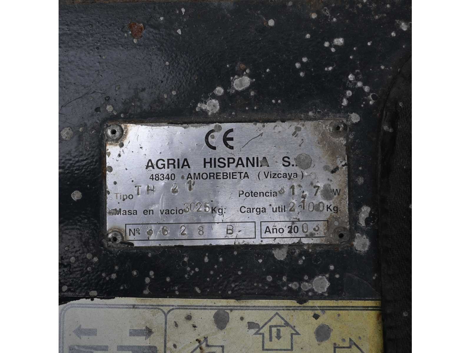 Merk: Agrimac Type: TH210 Bouwjaar: 2003 Brandstof: Diesel Kenteken: NL KENTEKEN Mast: Triplex Soort band: Lucht Aantal wielen: 4 Afgelezen urenstand: 7570 Ruw terrein: true Free-lift: true Side-shift: true Triple mast: true Hefvermogen: 2100kg Hefhoogte: 4050mm Luchtbanden: true Minimale doorrijhoogte: 2100mm Diesel: true Leveringsvoorwaarden: Gratis op vrachtwagen