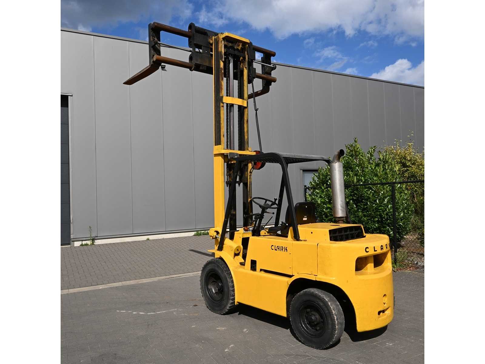 Clark Diesel forklift Mercedes diesel engine Merk: Clark Brandstof: Diesel Mast: Standaard Aantal wielen: 4 Hydraulisch verstelbare lepels: true Hefvermogen: 3000kg Hefhoogte: 4000mm Vol rubber banden: true Minimale doorrijhoogte: 2500mm Diesel: true Leveringsvoorwaarden: Gratis op vrachtwagen
