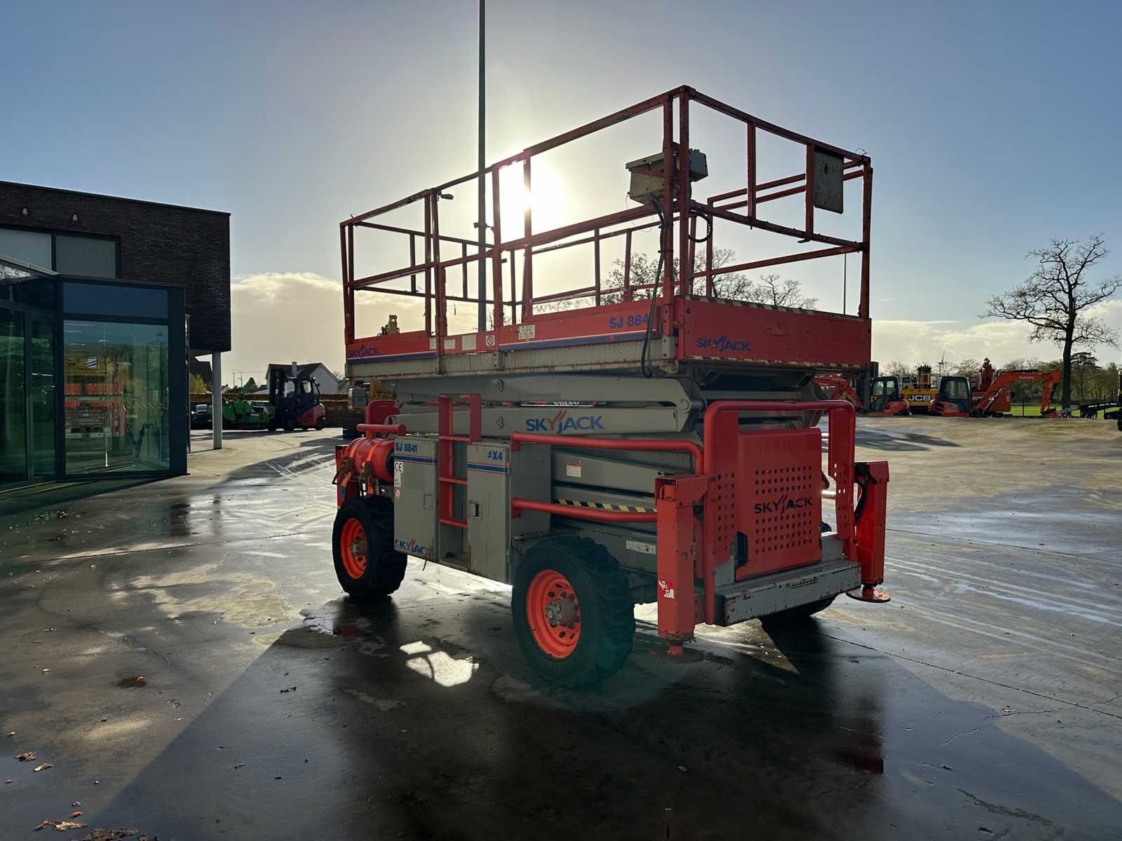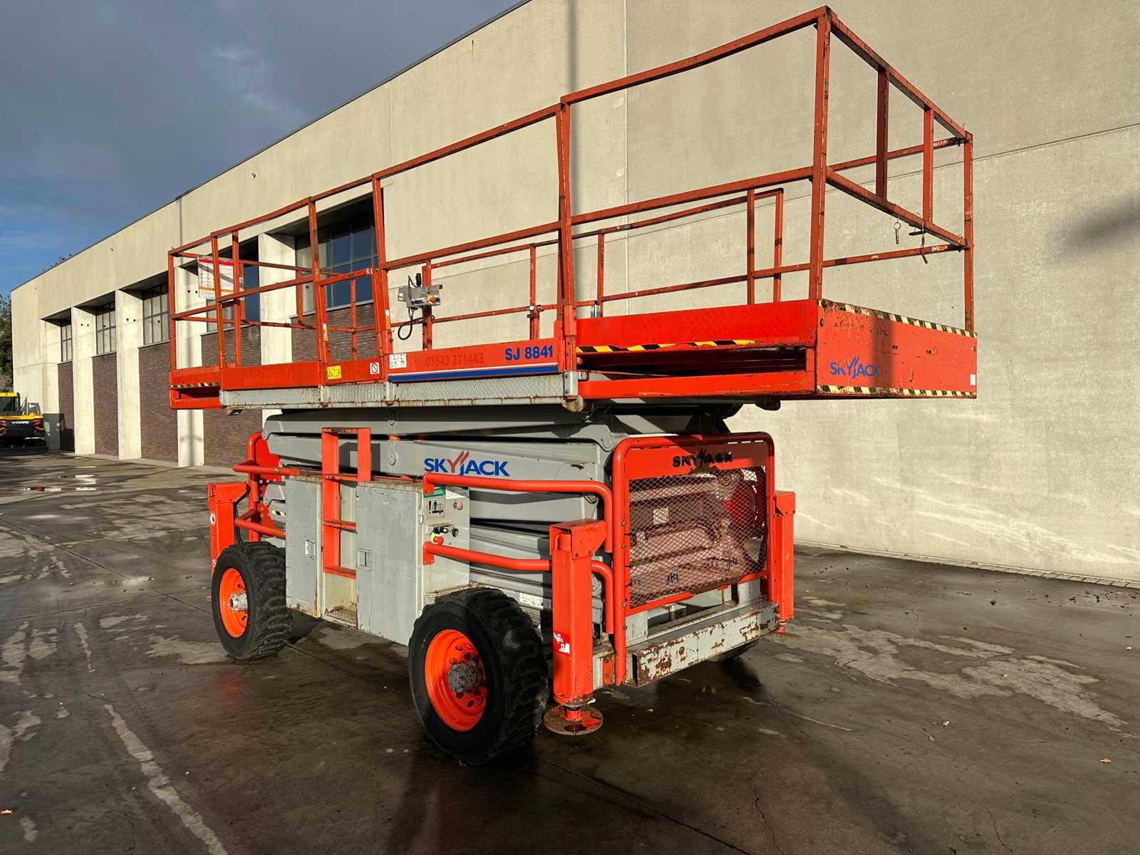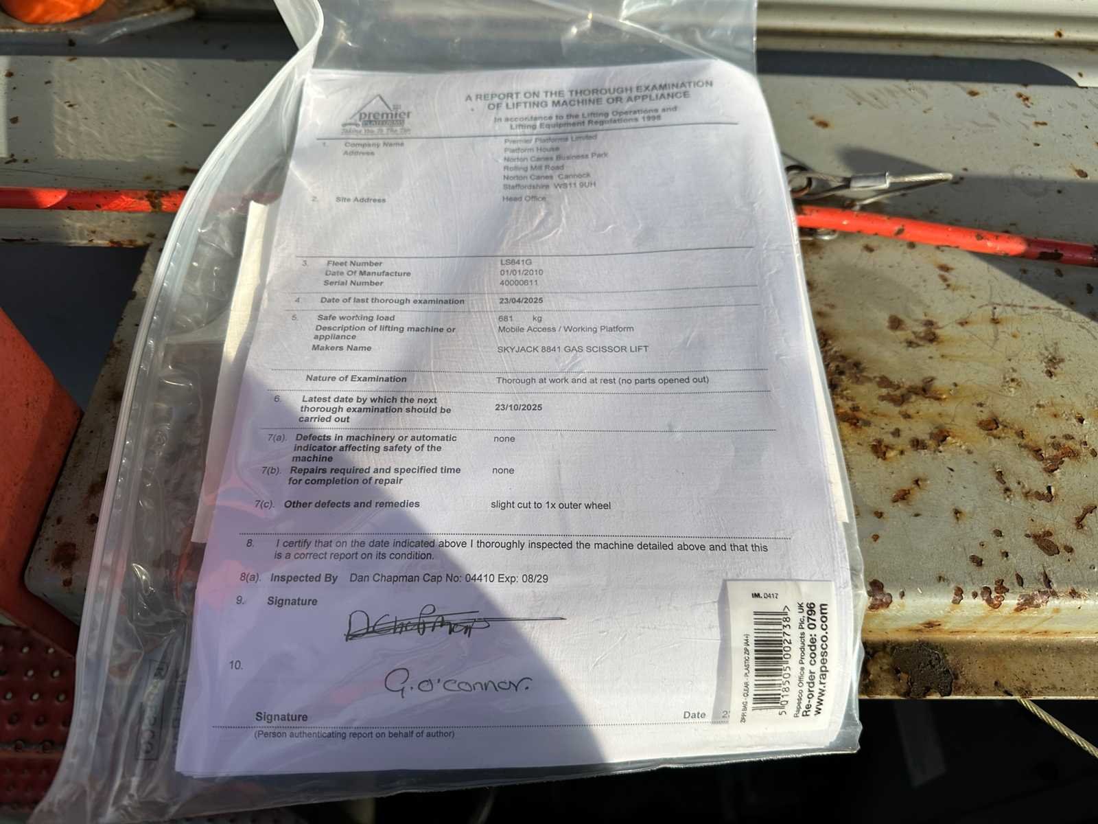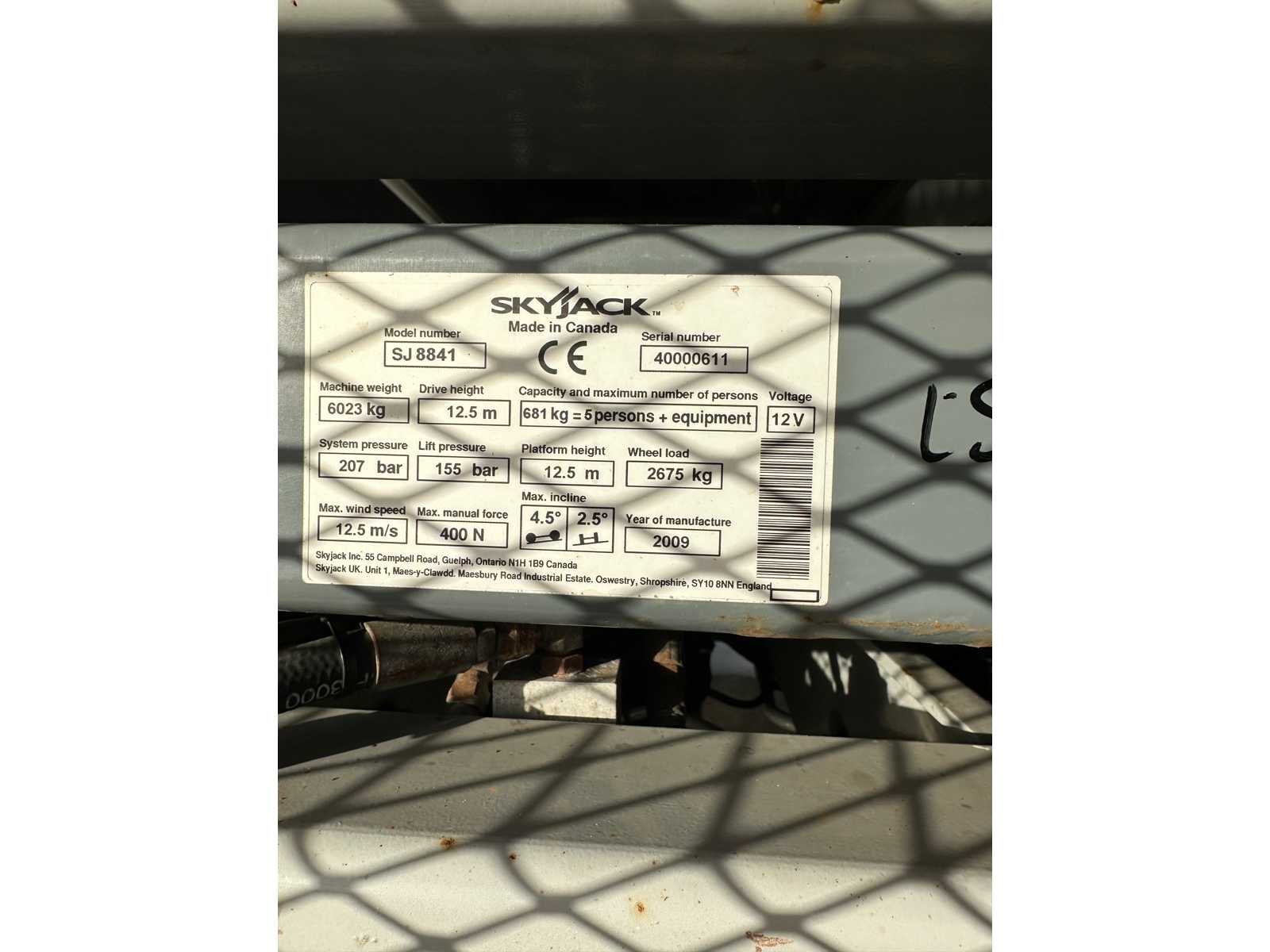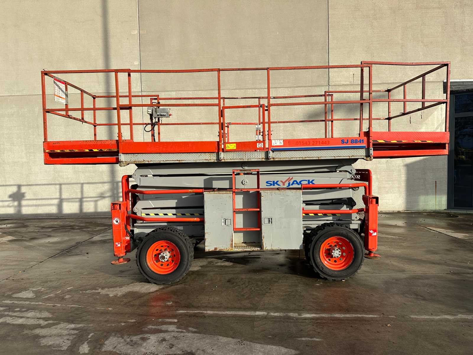 2 zijden uitschuifbaar (1200mm/zijde) Brandstof : LPG Merk: SkyJack Type: SJ-8841 Bouwjaar: 2009 Serienummer: 40000611 Schaarhoogwerker: true Werkhoogte: 14500mm Plateau afm. l: 3500mm Plateau afm. b: 1780mm Platform capaciteit: 681kg Afgelezen urenstand: 4647 Eigen gewicht: 6033kg Totale afmeting L: 3650mm Totale afmeting Breedte: 2250mm Totale afmeting Hoogte: 2800mm