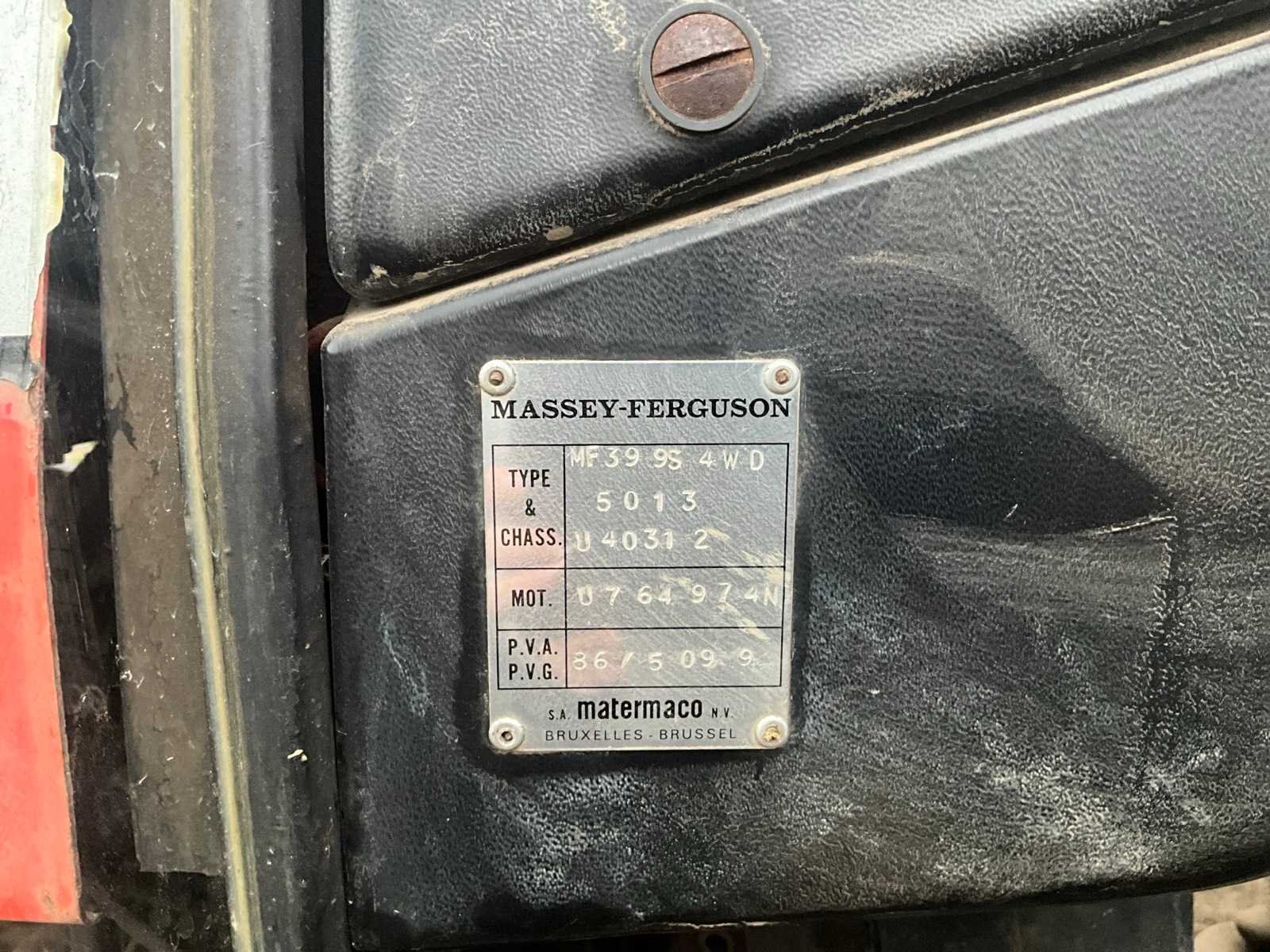 Bij dit lot horen nog een set extra banden (voor en achter). Merk: Massey Ferguson Type: MF399S4WS Bouwjaar: 1987 Chassisnummer: 5013U40312 Datum eerste toelating: 28/10/1987 Nationaliteit documenten: Belgisch
