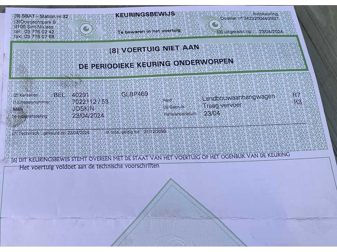 Volledig vernieuwde trage oplegger met 2 assen zonder ophanging. Gekeurd zonder opmerkingen op 23/04/2024 voor indienststelling en werkt in perfecte sporen. Met snellader en opvang voor stenen. MTM 13000kg. Merk: Joskin Type: 1011ESI Bouwjaar: 1994 Serienummer: 7022112
