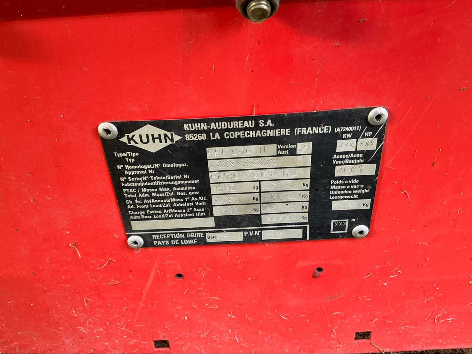De stroblazer bevindt zich in gereviseerde staat. Belangrijkste kenmerken: Laadcapaciteit: geschikt voor 1 ronde baal of 2 kleine vierkante balen. Inhoud kuip: ± 2,0 m³ Maximaal laadgewicht: ca. 1.000–1.200 kg. Leeggewicht: ± 1.200–1.300 kg . Totale lengte: ± 3,2 m Blazeruitgang: draaibare blaaspijp met handmatige. Uitblaasafstand: tot 18 meter (afhankelijk van materiaal en instelling). Aandrijving: via aftakas (PTO) 540 tpm. Min. benodigd tractorvermogen: 40–60 pk (30–45 kW). Bediening: hydraulisch (van "H" in 2060 H = hydraulische deuropening en schachtregeling). Merk: Kuhn Type: Stroblazer Primor 2060H Bouwjaar: 2008 Serienummer: PR120SH620987172 Eigen gewicht: 1800kg Totale afmeting Breedte: 1800mm Totale afmeting Hoogte: 2200mm
