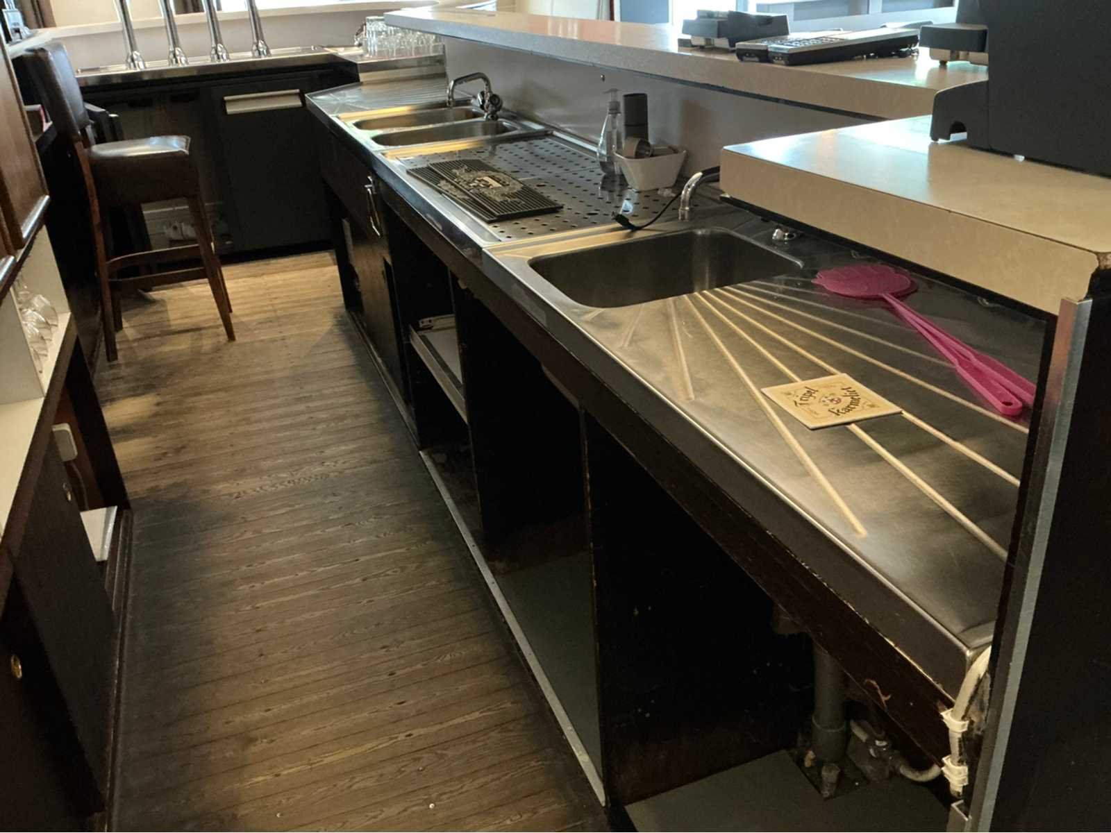 Dit lot bestaat uit de volledige café toog, muurbar, bar toog wegens stopzetting van activiteiten. Zonder tapkraan en andere extra’s. in mooie proper verzorgde staat. Merk: Houten toog - Tinus toog - café toog Totale afmeting L: 5600mm Totale afmeting Breedte: 3000mm