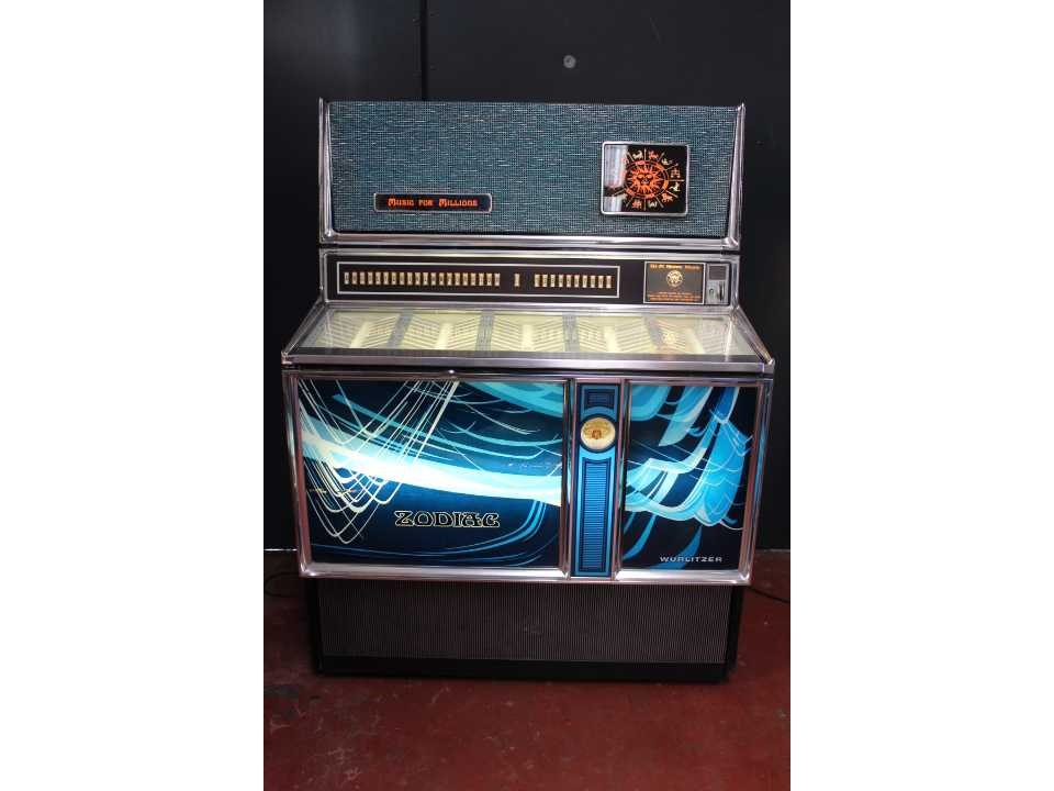 200 selecties, 45 tpm singles (worden erbij geleverd), stereo geluid Merk: Wurlitzer Type: 3500 Zodiac Bouwjaar: 1971 Gewicht: 115 Lengte: 660mm Breedte: 1040mm Hoogte: 1350mm