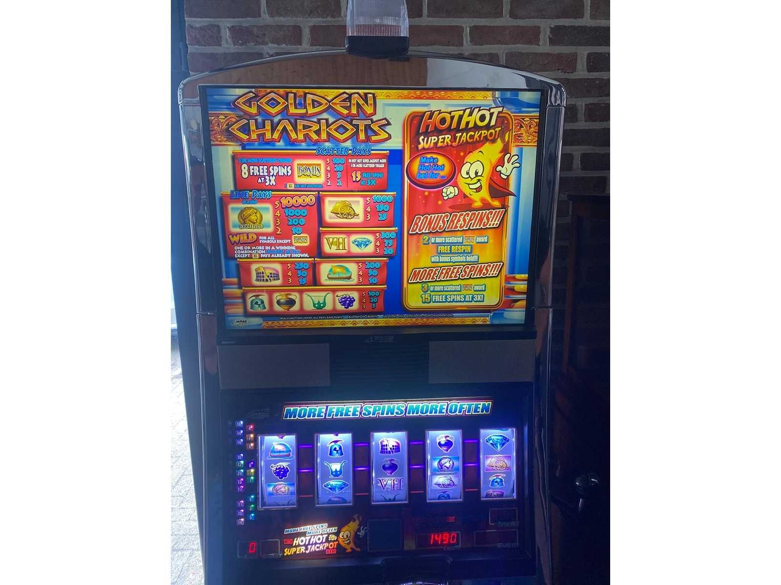 Casino Speelautomaat met knoppenbediening en handle, accepteert eurobiljetten Merk: WMS Type: Golden Chariots