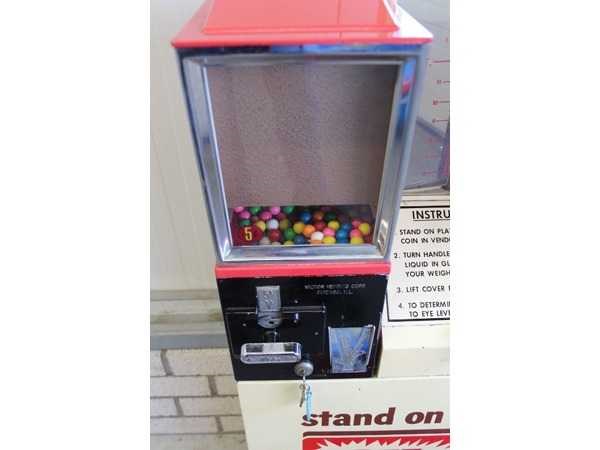 Vintage weegschaal met kauwgomballenuitgifte, met muntinworp, jaren 60, Locatie kavel: Zuidstraat 11, 4641 VZ Ossendrecht (Nederland) Merk: Vend R Scale