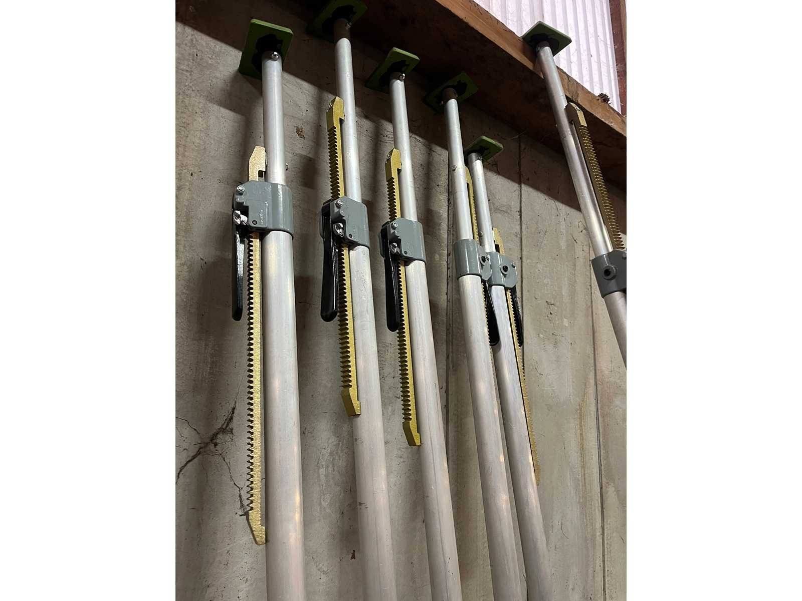 <li>Set van 6 plafondsteunen / montagestempels</li><li> </li><li>verstelbaar in lengte ca 2.5-3m </li><li>Telescopische aluminium steunen met tandheugel en hendel voor hoogteverstelling. </li><li>Ideaal voor het ondersteunen van gipsplaten, balken en lichte constructies.</li><li> </li><li> </li><li>Aantal: 6 stuks</li><li> </li><li>Materiaal: Aluminium</li><li> </li><li>Rubberen voetstukken voor stevige grip</li><li></li>