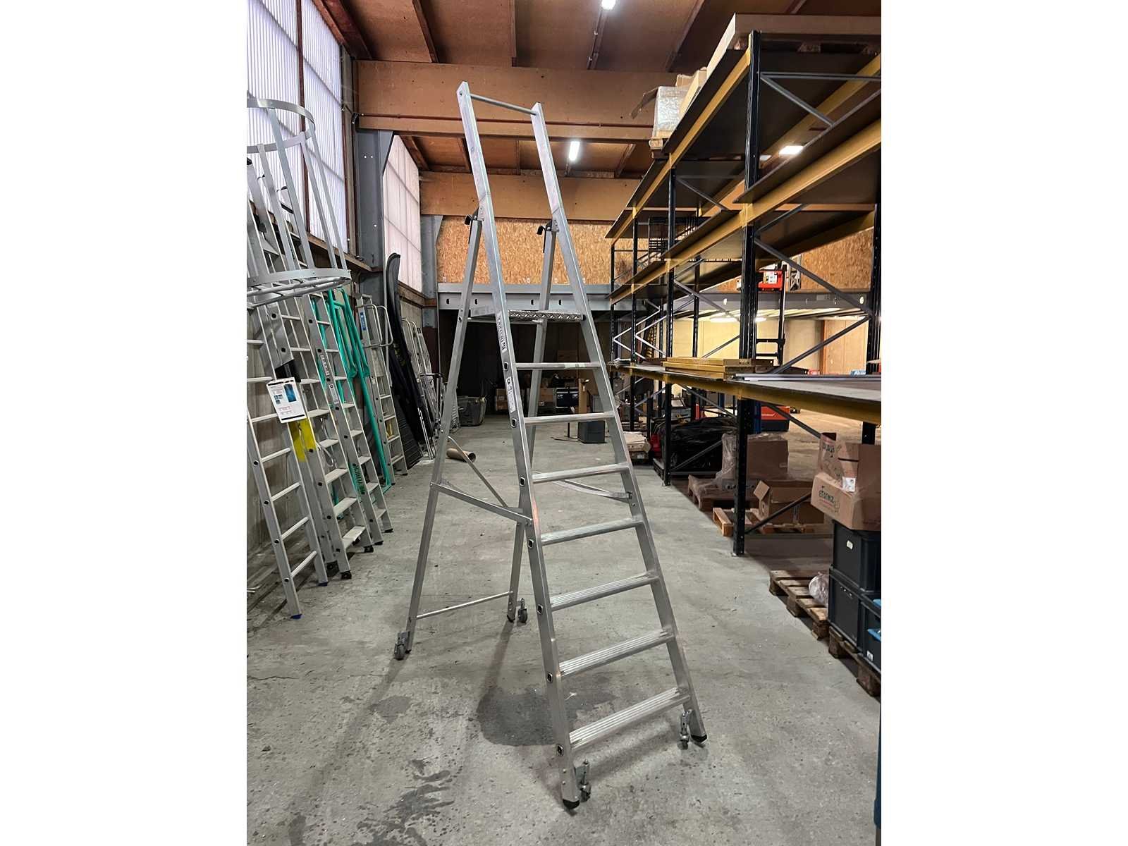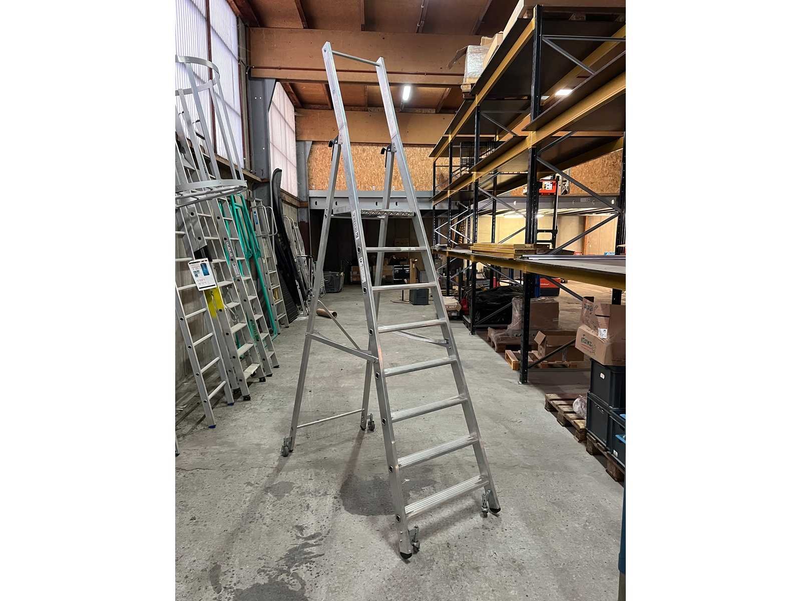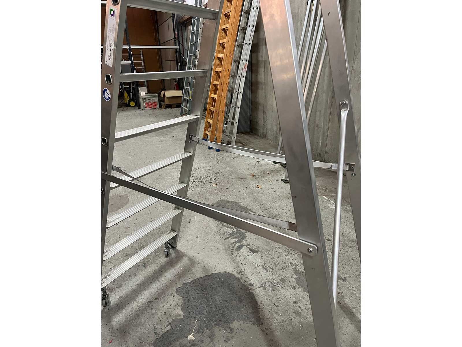 <li>Aluminium dubbele trapladder op wielen – Günzburger Steigtechnik</li><li> </li><li>Professionele ladder met antisliptreden, spreidbeveiliging en 4 geremde zwenkwielen.</li><li></li><li> Ideaal voor magazijn en werkplaats.</li><li> </li><li> </li><li>Materiaal: Aluminium</li><li> </li><li>Verrijdbaar met remmen</li><li> </li><li>Merk: Günzburger Steigtechnik/Munk</li><li></li> Merk: Munk Aantal treden: 8 Oplooptrap: true Enkel: true