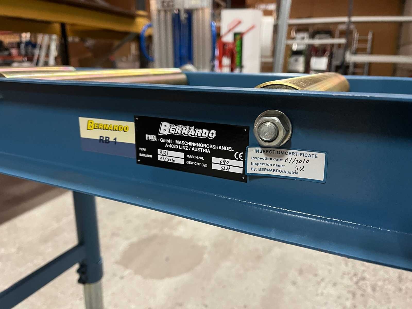 <li>De Bernardo RB-1 is een stabiele en praktische verroltafel, ontworpen voor het ondersteunen en eenvoudig verplaatsen van lange of zware werkstukken. Ideaal voor gebruik bij metaalbewerkingsmachines zoals cirkelzagen, lintzagen en houtbewerkingsmachines. Dankzij de traploos verstelbare hoogte en robuuste constructie biedt deze roltafel een veilige en efficiënte werkstukgeleiding.</li><li> </li><li> </li><li>Kenmerken:</li><li> </li><li> </li><li>Merk: Bernardo</li><li> </li><li>Model: RB-1</li><li> </li><li>Constructie: Stalen frame, gepoedercoat in blauw</li><li> </li><li>Rollen: 3 massieve, verzinkte stalen rollen voor soepele doorvoer</li><li> </li><li>Hoogte-instelling: Traploos verstelbaar en klembaar</li><li> </li><li>Voeten: Stabiele ronde doppen voor stevige plaatsing</li><li> </li><li>Certificering: CE-markering, inspectiecertificaat aanwezig </li><li> </li><li> </li><li>Technische specificaties:</li><li> </li><li> </li><li>Lengte van de baan: 1000 mm</li><li> </li><li>Rollenbreedte: 365 mm</li><li> </li><li>Rollendiameter: 59 mm</li><li> </li><li>Hoogteverstelling: 600 – 1000 mm</li><li> </li><li>Maximale draagcapaciteit: 250 kg</li><li> </li><li>Diameter standpijp: 52 mm</li><li> </li> Merk: Bernardo Type: RB-1 Leveringsvoorwaarden: Gratis op vrachtwagen