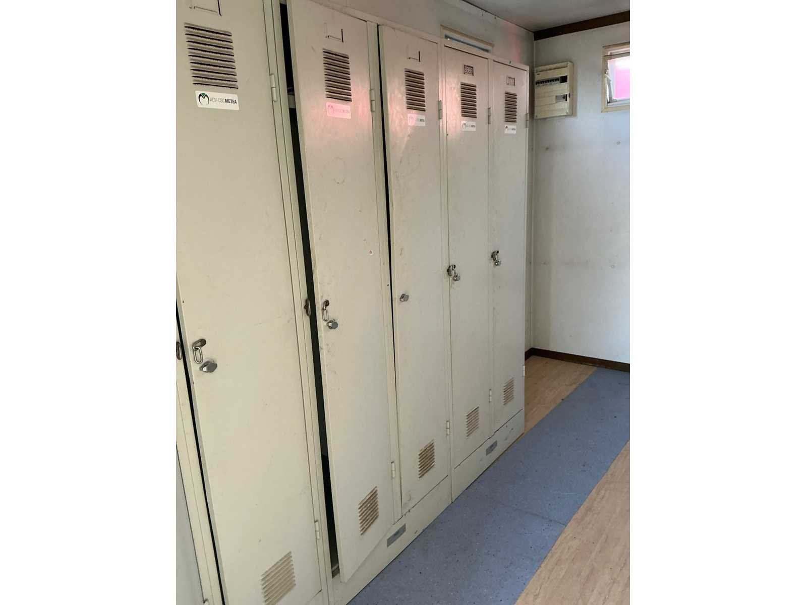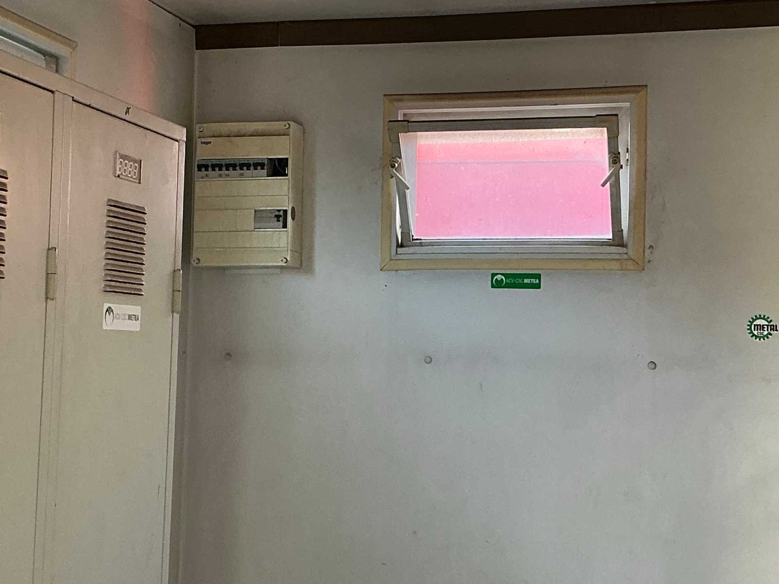 Voorzien van 2 dubbele zitbanken en lockerkasten Afmeting l: 6050mm Afmeting b: 3000mm Afmeting h: 2800mm Aantal ramen: 5 Aantal wastafels: 1