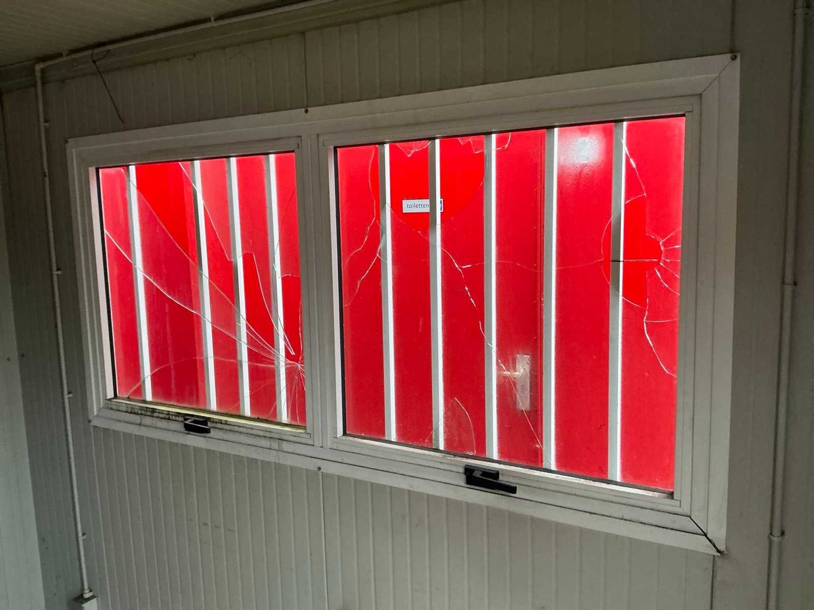Glas gebroken in raam Afmeting l: 3000mm Afmeting b: 2400mm Afmeting h: 2400mm Aantal ramen: 1