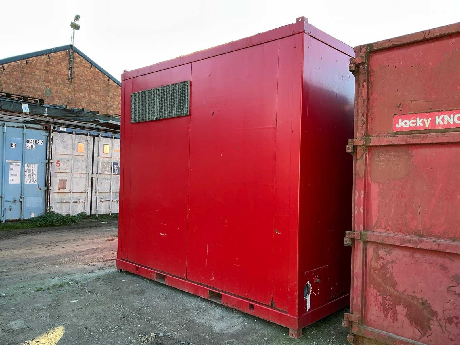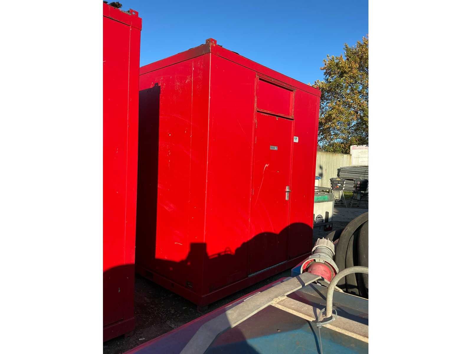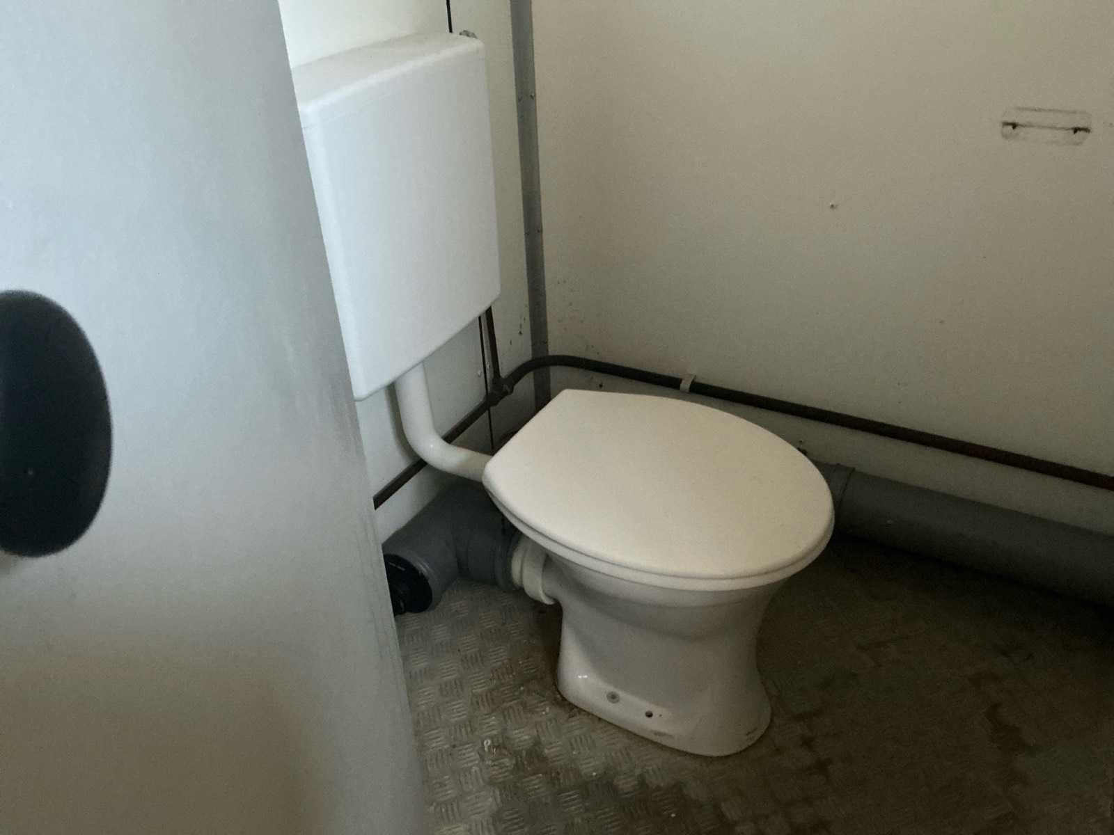 <li>urinoirs: 2 </li><li>gesloten toiletten: 2 </li><li>lavabo: 3 </li><li>verwarmingselement: ja </li><li>licht en elektriciteitsvoorziening: ja </li><li>voorzien van heftruck kokers en hijsogen</li> Aantal ramen: 1 Totale afmeting L: 2380mm Totale afmeting Breedte: 3000mm Totale afmeting Hoogte: 2750mm