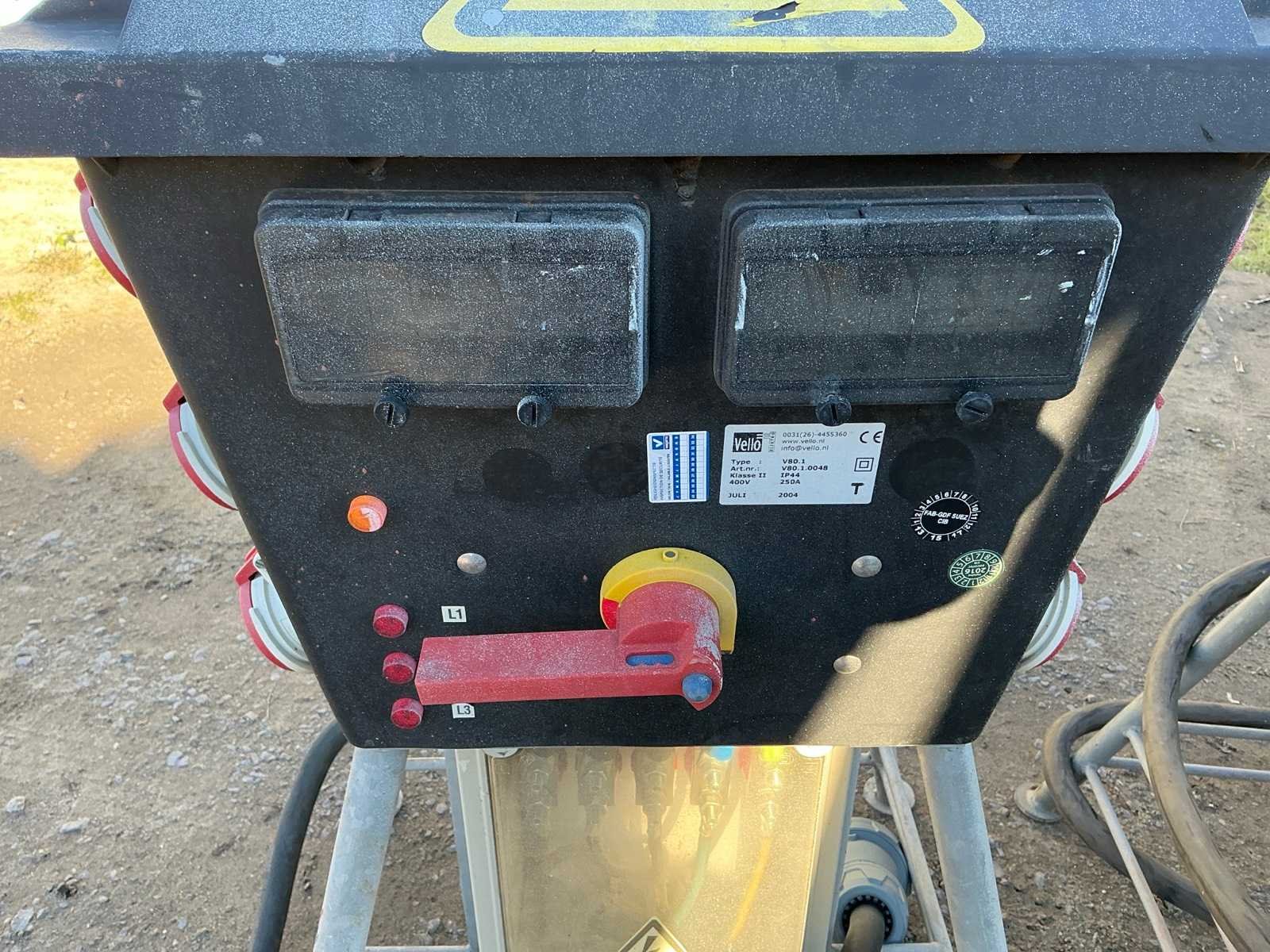 Merk: Vello Type: V80.1 Bouwjaar: 2004 Aansluiting: 250A Aantal uitgangen 230v: 6 Aantal uitgangen 380 v / 16 a: 2 Aantal uitgangen 380 v / 32 a: 6 Totale afmeting L: 550mm Totale afmeting Breedte: 550mm Totale afmeting Hoogte: 1200mm