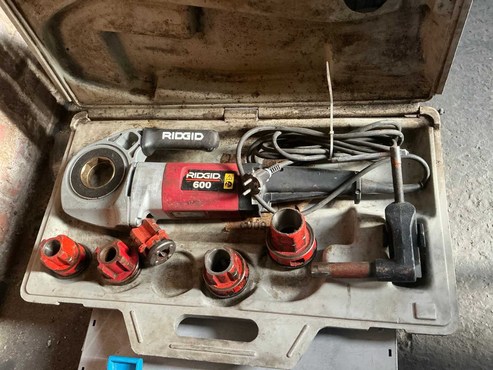Snijden van schroefdraad op pijpen met een diameter van 1/8 inch tot 1 1/4 inch. Merk: Ridgid Type: 600 Aansluiting: 230V Elektrisch: true Met koffer: true Vermogen: 1020W