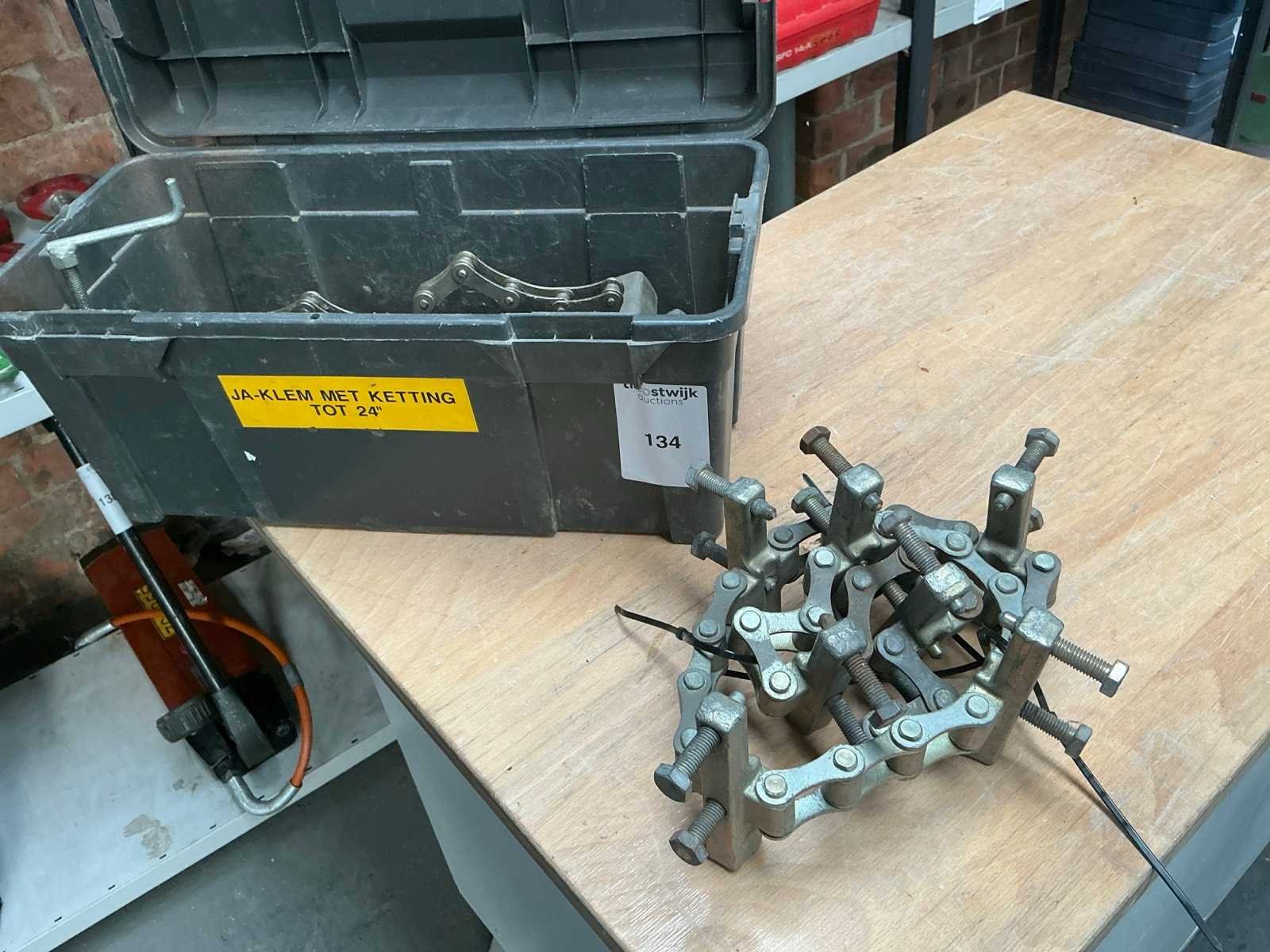 Inclusief kunststof opbergkoffer met opschrift Ja-klem met ketting 24”
