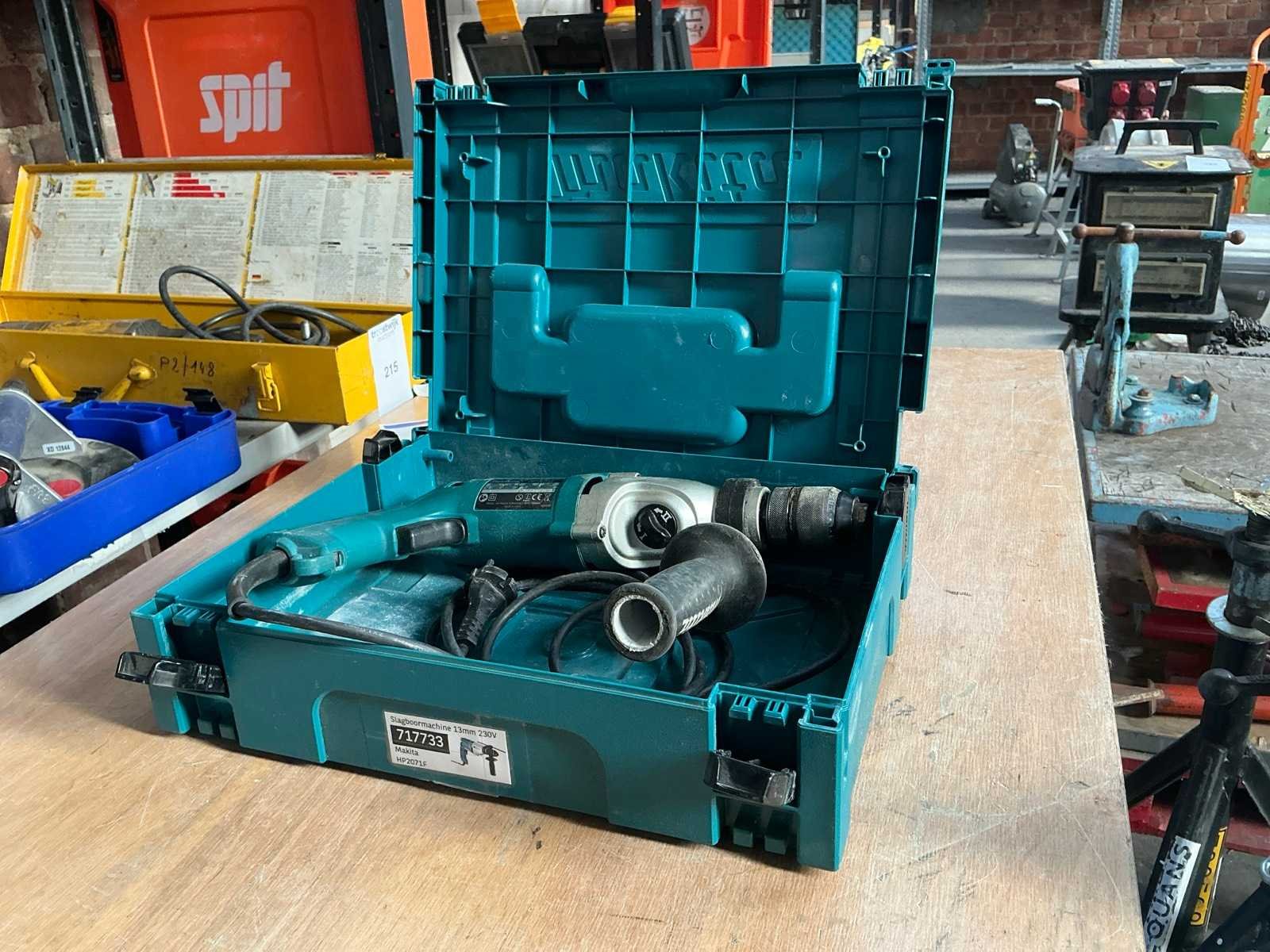 Merk: Makita Type: HP2071F Klopboormachine: true Vermogen: 1010W Met koffer: true Aansluiting: 230V