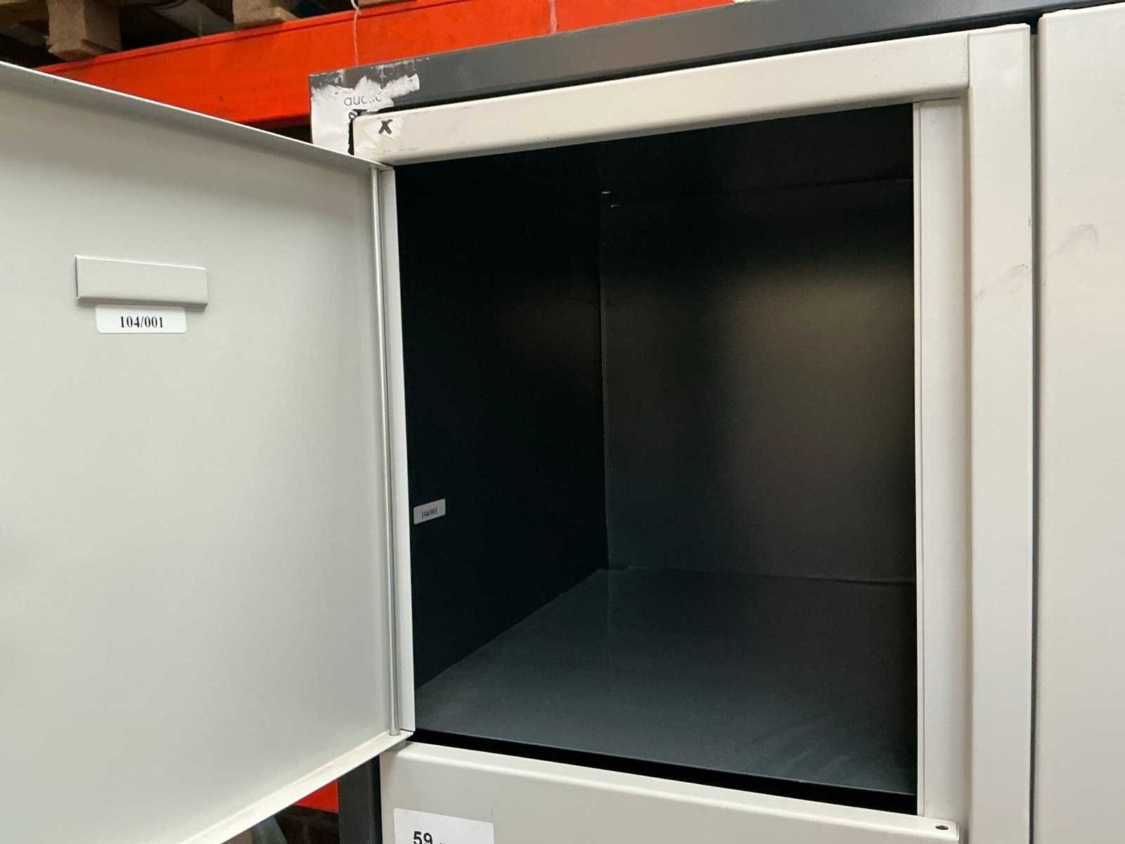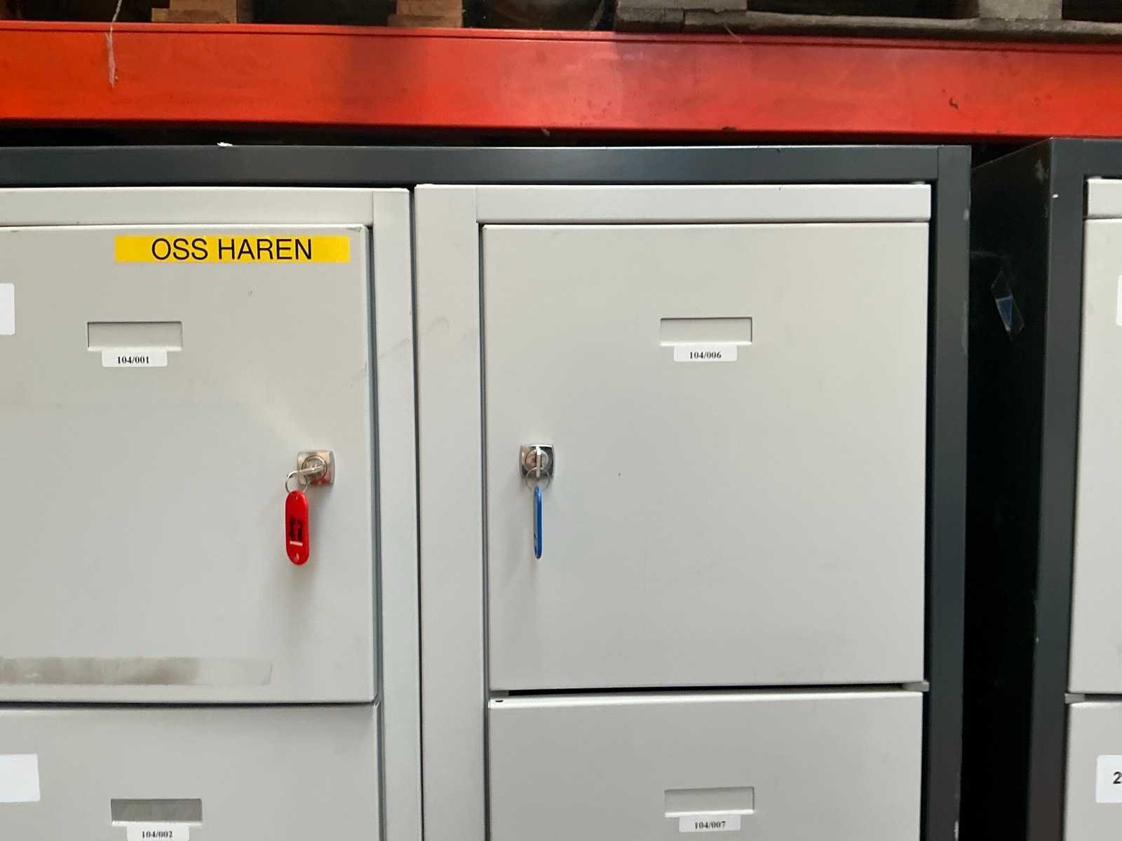 Voorzien van 10 afsluitbare deuren afmetingen 31x33 cm. Enkele sleutels ontbreken Breedte: 77cm Hoogte: 190cm Diepte: 50cm