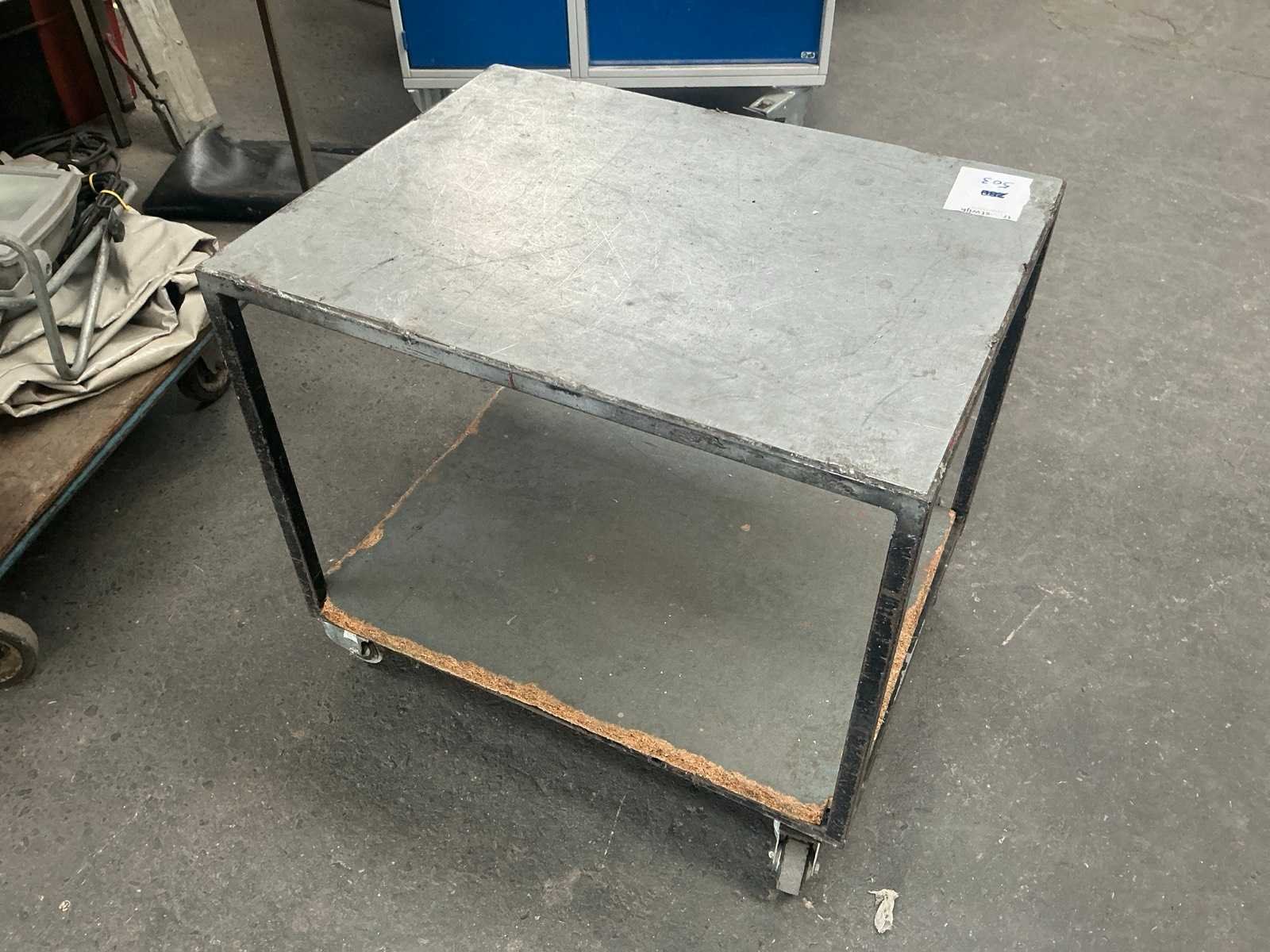 Metalen frame, metalen bovenblad, houten onderblad.