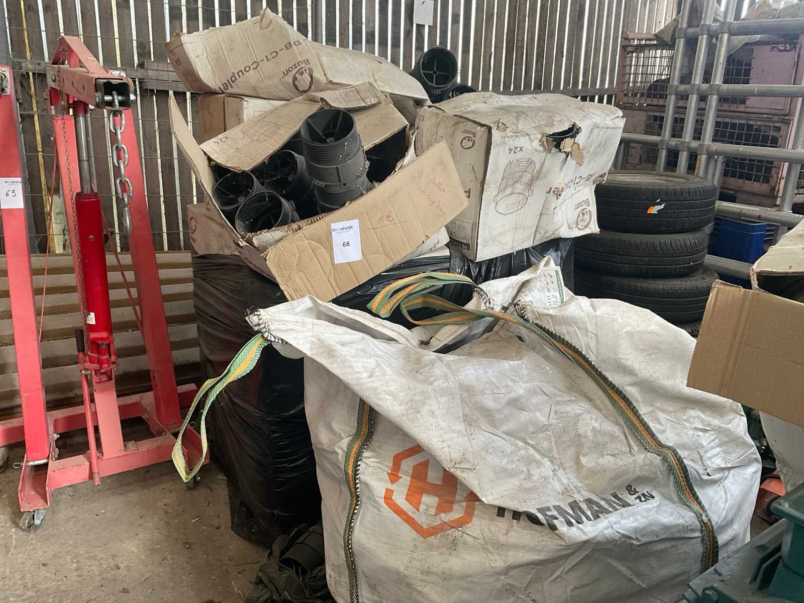 Gestapeld op pallet, diverse kartonnen dozen en 1 bigbag