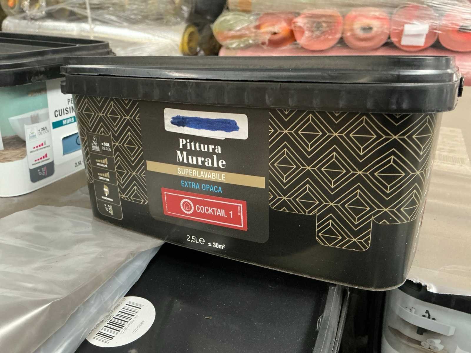 Inclusief 84 dozen muurverf Cocktail 1 - Volume 2,5 liter/doos - circa 25 m² per doos Kleur: Fjord 2 Muur: true Waterbasis: true